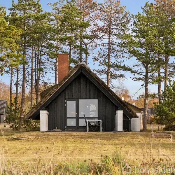 Et rigtigt sommerhus. Der kan selvfølgelig være flere definitioner, men en nær relation til naturen, fritlagte bjælker, stråtag og facaden i hvid og sort taler direkte ind i de flestes forestillinger. Det er netop de detaljer, der sammen med flere skønne finesser karakteriserer dette stråtækte sommerhus, som ligger i første række til Øer Strand. Huset er tegnet af arkitekt Henning Jensen, som tilmed tegnede det til sig selv.Naturen i sin mest betagende formHaven fortsætter nærmest direkte over i