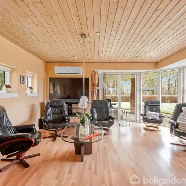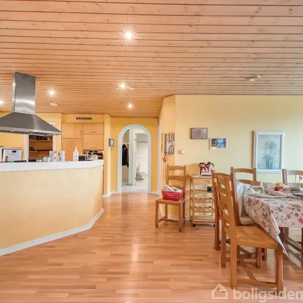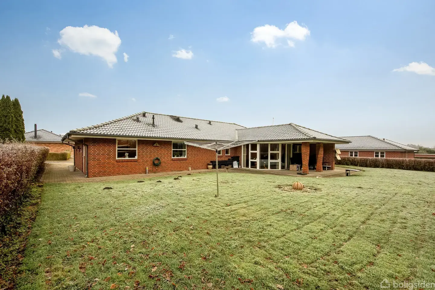 Klydevej 16 i Vojens byder velkommen til en rummelig, velholdt og indbydende etplansvilla, perfekt beliggende i et roligt og børnevenligt kvarter. Her får du en bolig, hvor både funktionalitet og komfort er tænkt ind – et sted, hvor hele familien kan trives i hverdagen.Huset fremstår med flot og klassisk arkitektur i røde mursten, og allerede ved ankomsten mærkes fornemmelsen af plads. Den brede indkørsel leder op til både garage og et mindre værksted. Indenfor mødes du af et lyst og indbydende