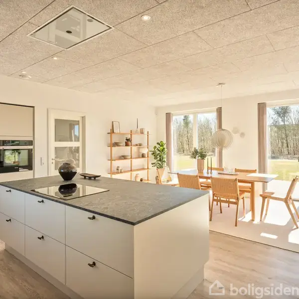 Velkommen til Knøsgårds Alle 6 – en nyopført villa fra 2025, hvor moderne komfort, gennemtænkt planløsning og stilrent design går hånd i hånd. Boligen er beliggende i en unik udstykning i Aabybro, et nyere kvarter, hvor du bor tæt på både byens faciliteter og naturskønne omgivelser. Her har du kort afstand til skole, daginstitutioner, indkøbsmuligheder og byens øvrige tilbud, samtidig med, at grønne områder og naturen ligger lige om hjørnet.Villaen rummer 162 veludnyttede kvadratmeter og er skab