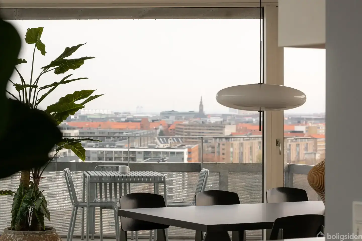 Beliggende på Knud Kristensens Gade 6 byder denne storslåede lejlighed på 148 kvadratmeter indrettet med et skarpt øje for detaljen af arkitektfirmaet Holgaard Arkitekter. Denne bolig, der kombinerer moderne komfort og overvældende udsigt, vil tage dig med på en rejse ud over det sædvanlige. Når du træder ind i dette hjem, bliver du straks fanget af den vidunderlige panoramaudsigt, der spreder sig over 180 grader og giver et uforstyrret blik over både Fælleden og Københavns Havn. Her kan du star
