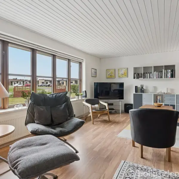 I rolige omgivelser nær skov og stisystemer i udkanten af Tornby venter denne velholdte villa, som er pæn med sin hvide facade og indbydende stil. Huset fremstår lyst og indflytningsklart, da det løbende er opdateret. Der er blandt andet sat en luft-til-luft-varmepumpe op, og senest kom et nyt gasfyr til i 2024. Indenfor er boligens køkken rummeligt og funktionelt med åben forbindelse til alrummet, som videre glider over i stuen. Det er således samlet i ét opholdsrum, og herfra får I adgang til