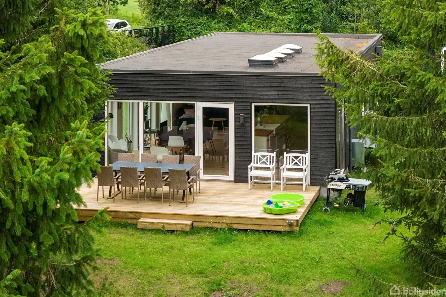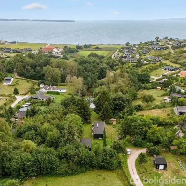 Drømmer du om et fristed ud over det sædvanlige? Midt i det naturskønne og eftertragtede Handrup Bakker – godt tilbagetrukket fra Kystvejen og i hjertet af det populære ferieområde ved Ebeltoft – finder du dette enestående fritidshus fra 2022. Ejendommen ligger på den eksklusive “Guldkysten” og tilbyder en unik kombination af luksus, ro og natur – her er der tale om ægte liebhaveri. På en næsten 6.000 m² stor, kuperet naturgrund med sin egen private sø og uforstyrret vild natur, får du en helt særlig oase, hvor biodiversiteten trives. Den velholdte græsplæne omkring huset inviterer til afslapning i hyggelige kroge. Omkring søen vokser den oprindelige vegetation frit, hvilket skaber en helt unik stemning og en følelse af at være ét med naturen. Bag de stilfulde sorte jernlåger åbner der sig et moderne og arkitektonisk gennemført fritidshus, hvor både hovedhuset og det tilhørende anneks er opført med sorte træfacader og skråt tag – et design, der emmer af eksklusivitet og nordisk minimalisme. Indenfor mødes du af et lyst og indbydende opholdsrum, hvor entré, køkken og stue smelter sammen i ét åbent plan. De store panoramavinduer trækker naturen helt ind i stuen og skaber en følelse af frihed og rum. Det høje loft og de ensartede gulve gennem hele huset (undtagen det elegante badeværelse med klinker) understreger kvaliteten og helhedsindtrykket. Køkkenet er et centralt samlingspunkt med en smuk køkkenø og unikke detaljer – blandt andet ovenlysvinduer, gaskomfur og ikke mindst de iøjnefaldende retroinspirerede, pink amerikaner-hvidevarer, der tilføjer personlighed og wow-effekt. Huset rummer to rummelige soveværelser samt et eksklusivt badeværelse med brus og direkte adgang til haven. Det tilhørende anneks matcher hovedhuset i stil og kvalitet med lydabsorberende Troldtekt-lofter og samme smukke gulve. Her finder du yderligere to gode soveværelser, en ekstra stue med udgang til haven og et lækkert badeværelse med dobbelt regnbruser, vaskemaskine og direkte udgang til naturgrunden Ejendommen sælges uden indbo – så du får mulighed for at sætte dit eget præg på dette enestående fristed. Kort sagt: Et moderne og luksuriøst fritidshus med plads til hele familien – og en naturgrund i særklasse, hvor ferier og fridage bliver til noget helt særligt. Djursland tilbyder desuden et væld af oplevelser – fra Fregatten Jylland og Ree Park Safari til Djurs Sommerland og det charmerende Ebeltoft med brostensbelagte gader og kulinariske perler.