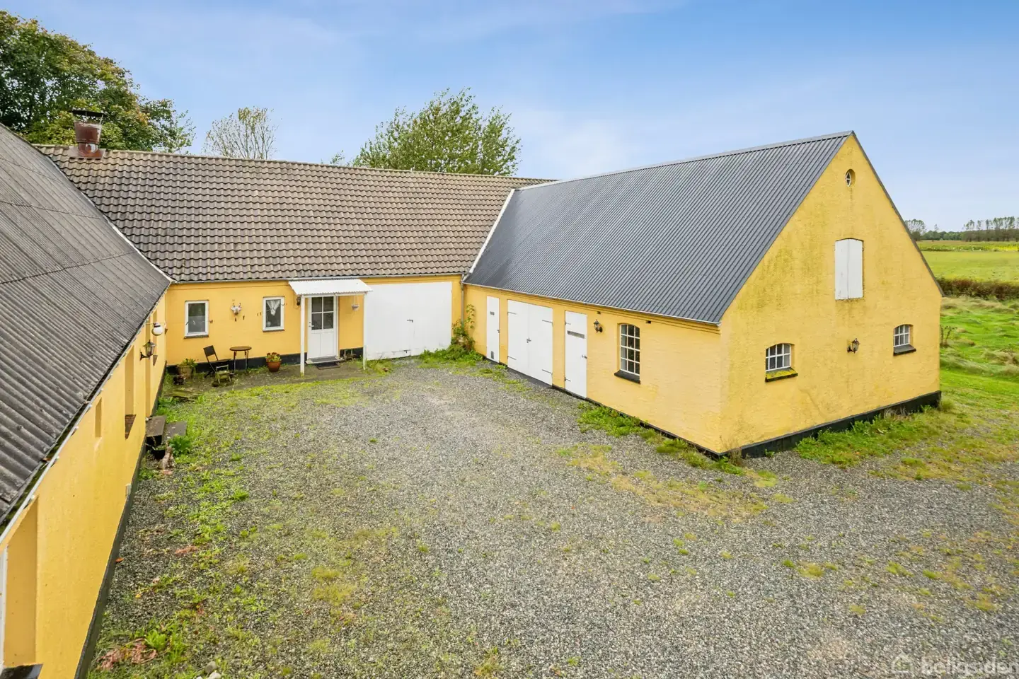 Alléens velvoksne træer tager imod jer, når I drejer ind på matriklen, og det varer ikke længe, før I kan stige ud af bilen på gårdspladsen, hvor en dejlig jordnær og hjemlig atmosfære hersker; kan I fornemme, at der har stået hus lige her siden 1868? Med så meget plads, som I får her, er der rig mulighed for at udleve drømmene om høns og hund, køkkenhave og kartofler. Og I har allerede taget det første skridt mod det gode udeliv, for med 7.456 kvm og udsigt til de åbne vidder, udfolder en dejl