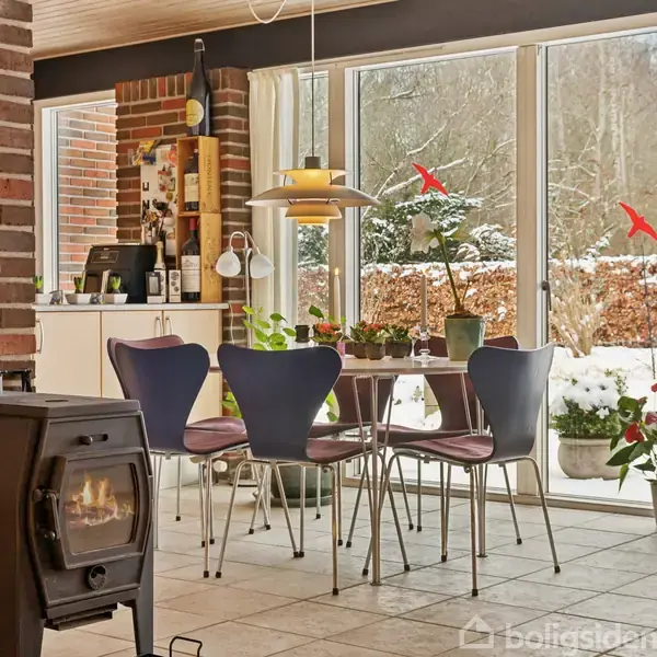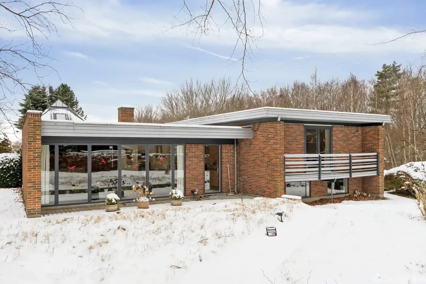 Flot og detaljerig 70’er-villa med skøn udsigt.Et fuldmuret hus fra 1977 i flere niveauer med utallige charmerende detaljer. Det er, hvad du skal glæde dig til at se på denne 1.011 m2 store hjørnegrund, der ligger uforstyrret med få naboer, skråning op til vejen og en fantastisk udsigt til naturen og sæsonernes skiften. Udsigten er især glimrende fra det hyggelige køkken-alrum, der har store vinduespartier ud mod haven. Holder du af gode vandreture i naturskønne omgivelser, vil du desuden værdsæ