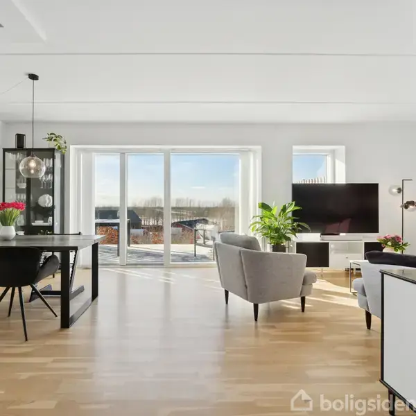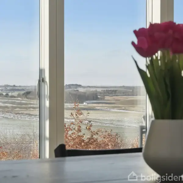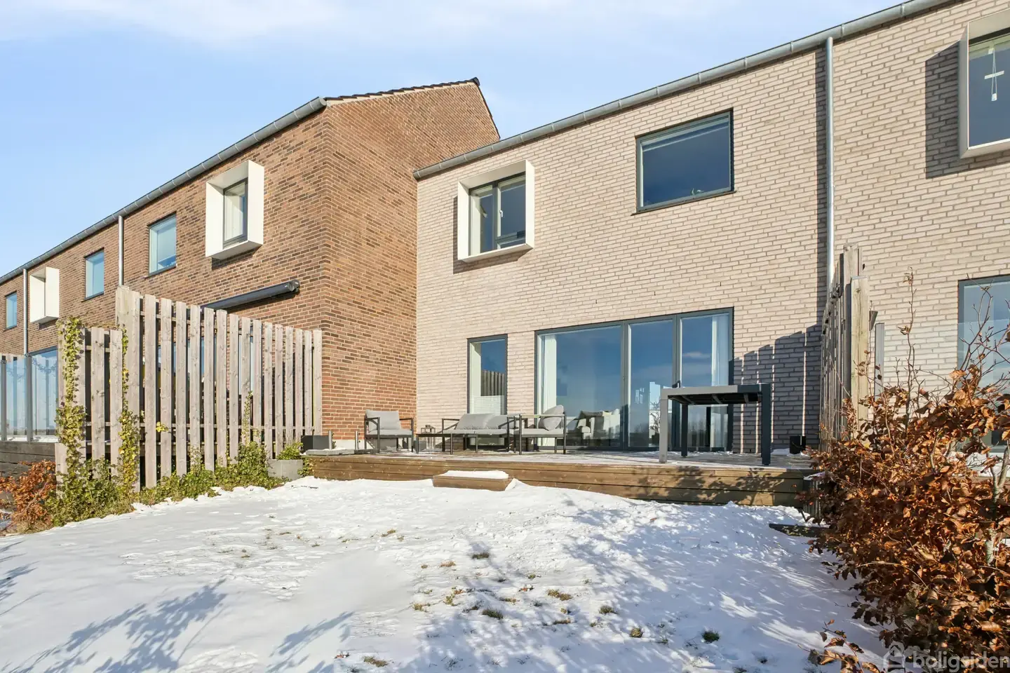 I Smørum ligger dette moderne rækkehus fra 2019, som er en del af den eftertragtede udsigtsrække. Boligen er indflytningsklar og placeret i et roligt og familievenligt område, hvor mange børnefamilier har fundet sig til rette. Huset byder på en gennemtænkt planløsning, der fordeler kvadratmeterne over en stueetage og en førstesal. I stueplan findes entréen med adgang til et gæstetoilet, ligesom det også er fra entréen, at hjemmets åbne opholdsrum tilgås. Her har I køkken, alrum og stue i åben f