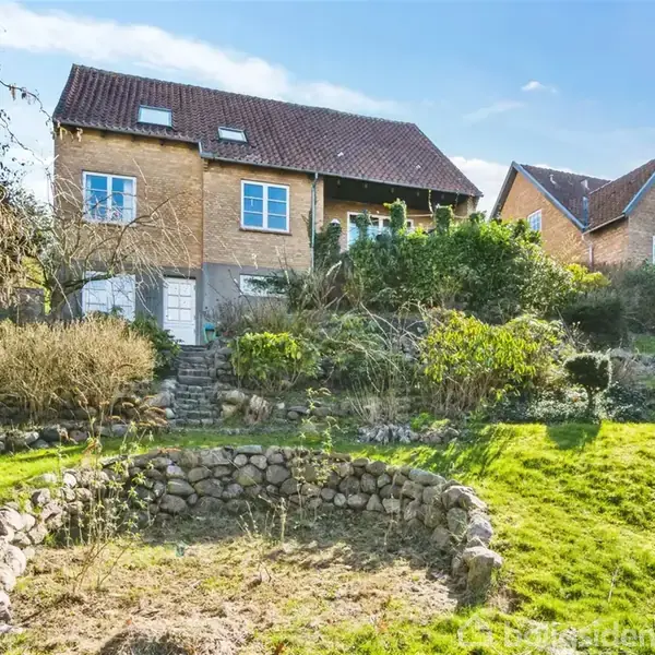 Gedigent bygget 50’er villa opført i gule facadesten og rødt tegltag med termovinduer af forskellige årgange. Huset er opført i 1951. Indretningen består bl.a. af entre med vindfang, opholdsstue med fyrtræsgulv og åben forbindelse til køkken/alrum, køkkenet er med skabslåger i lyst træ fra 1991 og med laminatgulv. Alrummet er belagt med fast tæppe. Værelse med fyrtræsgulv og ældre skabe. Gæste bad med brusehjørne og lyse gulv og vægfliser. Fra opholdsstuen er der udgang til attraktiv terrasse med en flot udsigt til grønne områder og hele haven. Tagetagen, der er udnyttet i 1998, er indrettet med meget stort værelse med lofter i kip og flotte blotlagte bjælker, soveværelse med fyrtræsgulv og ældre skabe, børneværelse med ældre skabe. Badeværelse med væghængt toilet, bruseniche og badekar. Der er fuld kælder under huset, hvor den ene side er frilagt af jorden og med direkte indgang fra haven. Kælderen indeholder bl.a. et pænt værelse medklinkegulv med gulvvarme, værelset er ikke registreret som beboelse. Herudover div. kælderrum med fjernvarmerum og vaskerum. Haven er meget skrånende og godt opvokset med bl.a. frugttræer, mange buske og græs. Villaen er beliggende i attraktivt boligområde med kort afstand til byens centrum og indkøbsområder. En villa der er virkelig godt indrettet til en børnefamilie. Når du køber en bolig gennem EDC, har du mulighed for at få en gratis flytteforsikring. Ønsker du denne, skal du sende en mail med "Ja tak" til [email protected]