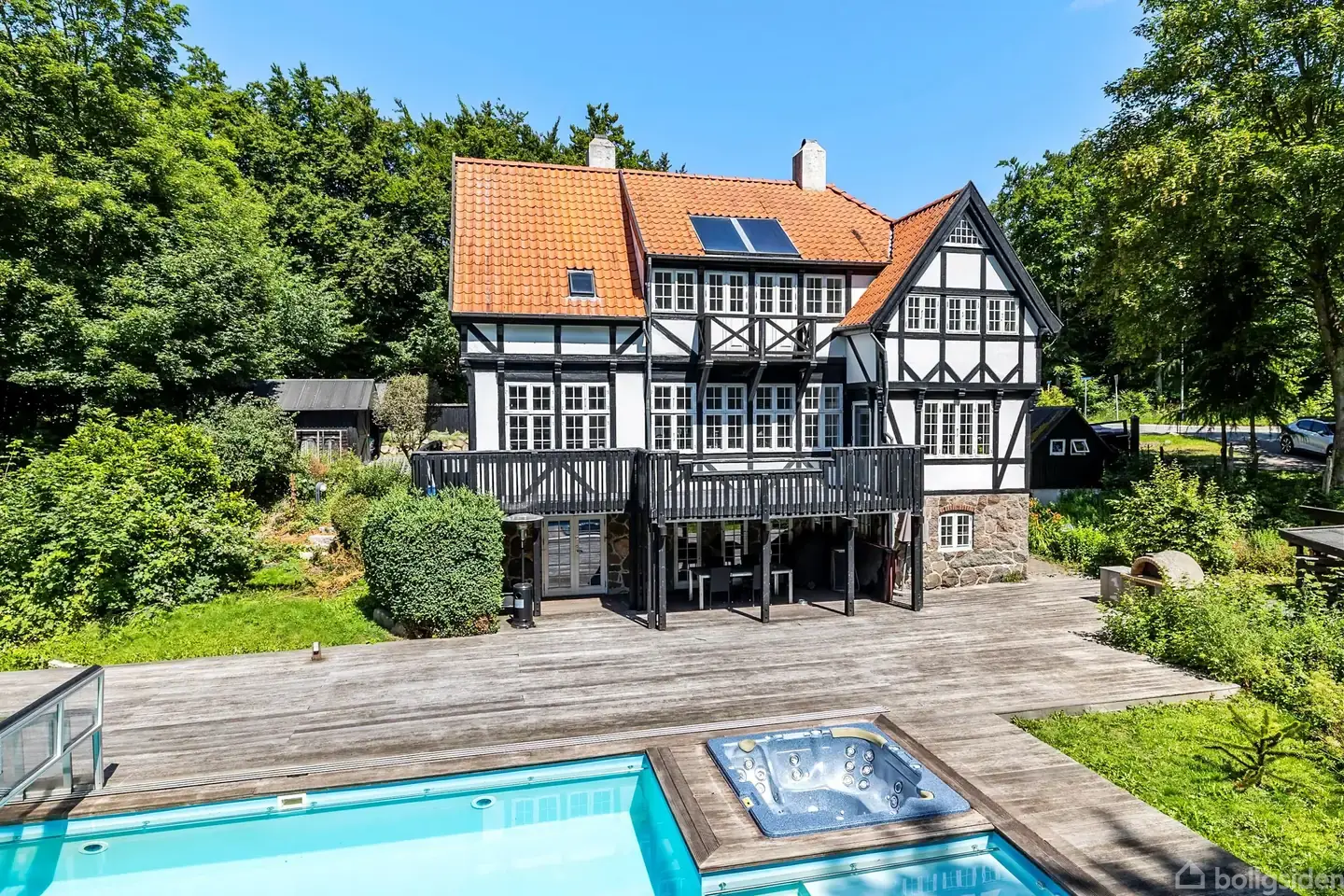 Leder du efter en spændende ejendom med muligheder, så er Kongevejen 12 en oplagt mulighed. Wartheim står prydet over den gamle hoveddør til ejendommen, som tidligere har været hjem for børn fra økonmisk velstillede familier. Ejendommen har med sit flotte arkitektoniske udseende mange flotte detaljer, som gør ejendommen til noget helt særlig. Det skønne bindingsværkshus med den høje kampestenssokkel rummer i dag plads til den helt store familie. Den store 106m2 kælder indeholder flere gode disponible rum samt bryggers og bad. Fra det store rum i kælderen er udgang til stor og skøn terrasse samt overdækning. Kælderen har tidligere været anvendt til liberalt erhverv. Boligen byder en velkommen via den rummelig éntre, som giver adgang til boligens gæstetoilet, trappen op til 1.salen indeholder 4 gode værelser, hvor det ene værelse har adgang ud til en altan med udsigt til haven og swimmingpool. Herudover byder første salen også på et rummeligt badeværelse. Stue planen byder på et flot og rummeligt køkken, som giver adgang til den skønne stue med brændeovn og med udgang til terrassen. Ydermere findes der er en spisestue, med plads til at kunne invitere hele familie på besøg. På ejendommen finder man desuden en garage/carport, et udhus, brændeskur og en hygge pavillon hvor man kan nyde udsigten udover haven fra. Lyder dette som en bolig for dig, så kontakt os for en fremvisning på tlf. 58528200