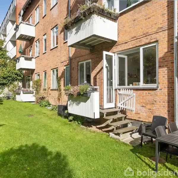 Indflytningsklar 3v-lejlighed med klassiske detaljer og adgang til skøn grøn have