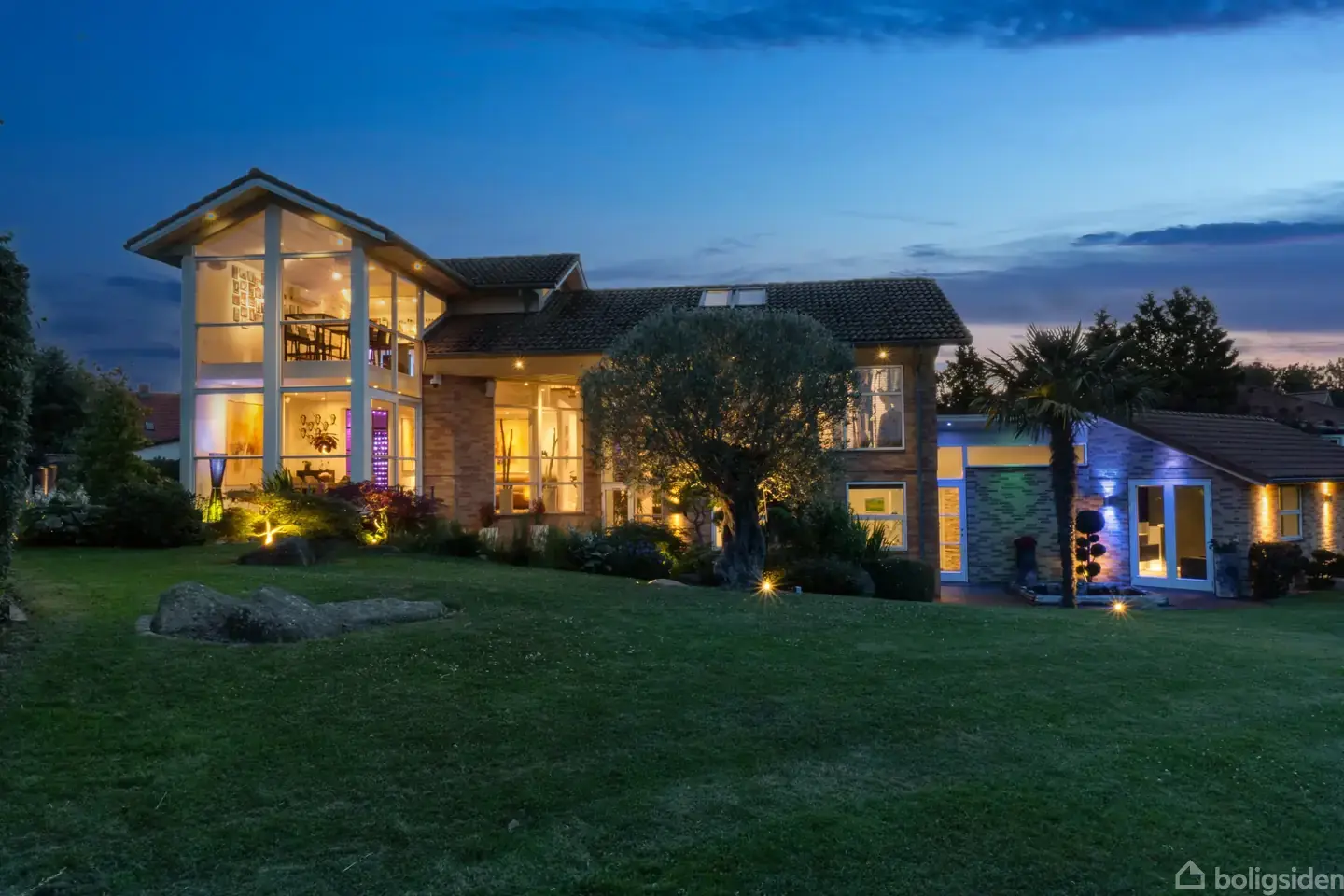I den sydlige del af Slagelse, direkte ud til det store, grønne område ved Antvorskov, står denne særegne villa, der toner frem med en unik arkitektur. Det er kombinationen af en middelhavsæstetik og klassisk, dansk håndværk, der tilsammen skaber en helt forrygende stemning med store lysindfald og en dynamisk planløsning med mange forskudte niveauer. Haven passer perfekt ind i billedet, hvor både fiskedam, middelhavsplanter og et velassorteret udbud af terrasser er prioriteret højt. En fabelagt