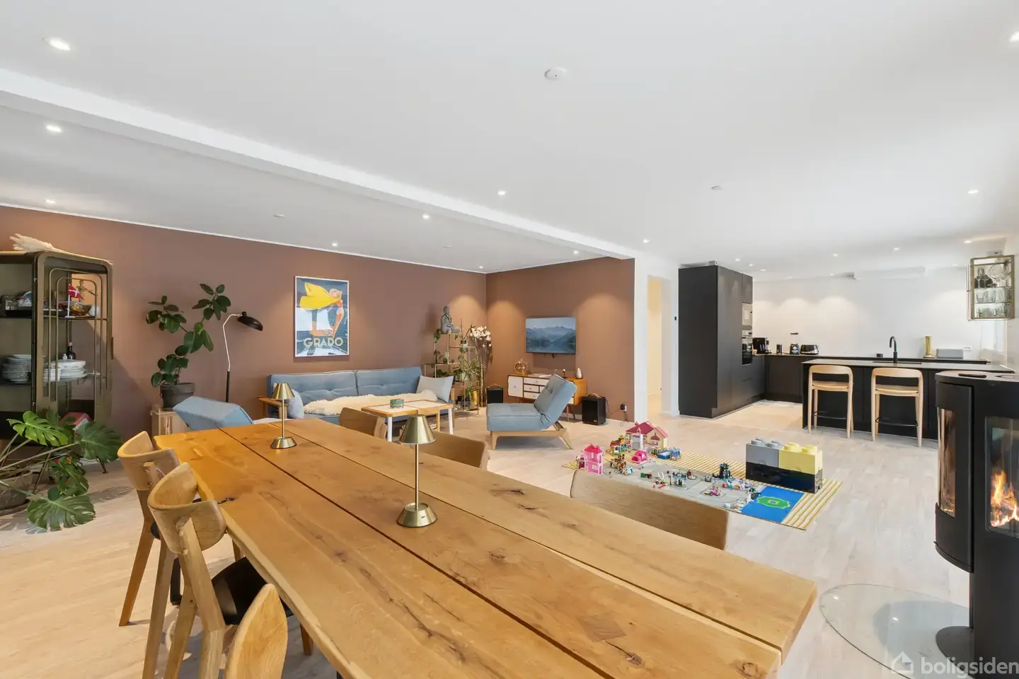 Nu slår vi dørene op til dette flotte lyse hus, der i 2021 blev totalt renoveret. Her var kun vægge og tag tilbage, ellers blev alt udskiftet. Samtidig blev huset udstyret med alle mulige former for tiltag, der letter hverdagen: Solceller, der styrer aircondition i soveværelserne, blødgøringsanlæg til vandet, gulvvarme overalt, Quooker og vamestyring via mobilen. Indenfor mødes I af en rummelig entré og fordelingsgang med indbygget skab. Herfra er der adgang til husets store køkken-alrum i åbe