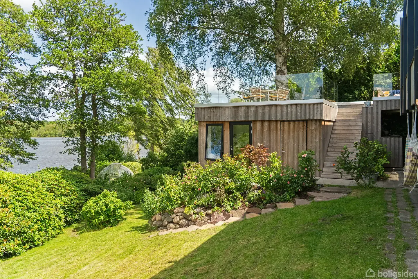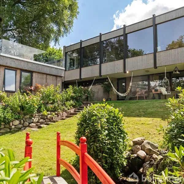 På Kongshvilebakken i Lyngby, i allerførste parket til Lyngby Sø, ligger denne fabelagtige villa. Udsigten til vandet og grønne trækroner er velsagtens den bedste i hele området, og det kan man ikke mindst takke den vellykkede arkitektur for. Udover at omgivelserne på sømløs vis er integreret i både hus og have, så er selve boligen udført med stringente linjer, der kun er blevet yderligere forstærket og fremhævet gennem de seneste års moderniseringer og forbedringer. Haven er smuk, og et væld af