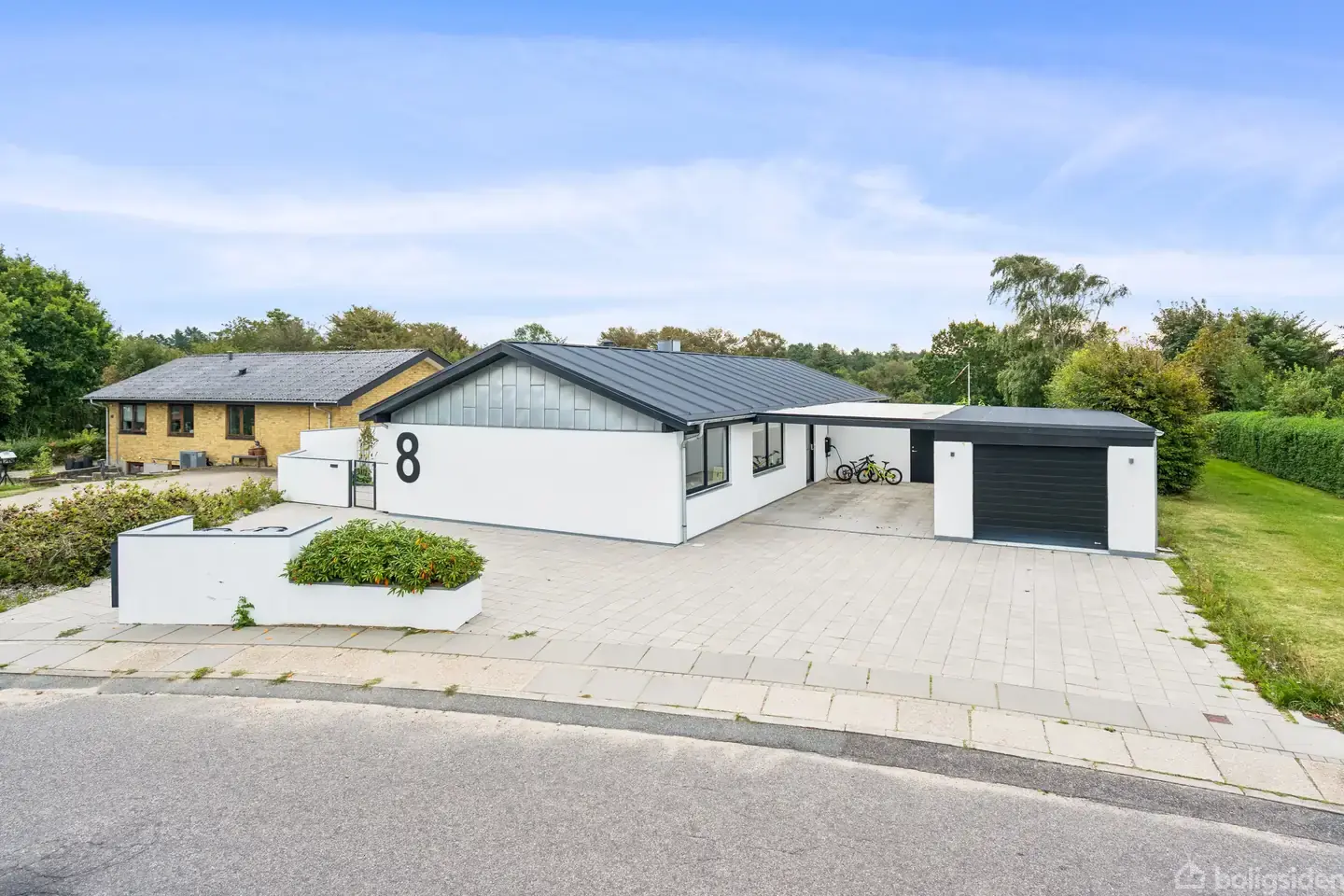 Nu udbydes denne fantastisk beliggende og renoveret 1 plans villa i Bjergby på en 1.426 m2 stor naturgrund!Villaen fremtræder i velholdt og indflytningsklar stand, hvor man løbende - inde som ude - har moderniseret nærmest "alt". Udover beboelsen er her god carport samt garage, således man kan gå tørskoet ind i huset. På sydvestsiden af huset, finder man et unikt udeområde og gårdhavemiljø med udsigt til skøn natur, hvor der virkelig er tænkt over detaljerne - solrige terrassekroge i flere nive