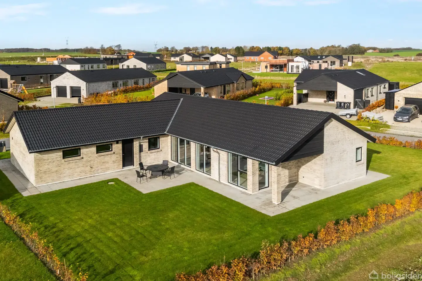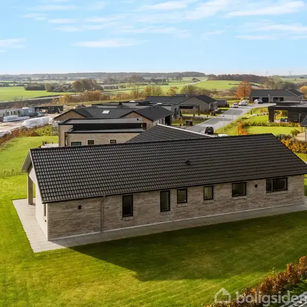 Nu kan I få fantastiske forhold for tilværelsen i Odder. Denne fuldmurede etplansvilla fra Preben Jørgensen Huse beriger jer med et indbydende interiør og en gennemtænkt planløsning såvel som en attraktiv beliggenhed i et af byens nyetablerede villakvarterer med en fantastisk udsigt.Ejendommen fra 2022 fremtræder med et stilrent udtryk, der henleder tankerne på kvalitetsvillaens byggestil med enkle funktionelle linjer. Den integrerede garagebygning med to porte bemærkes også ved ankomst på matri