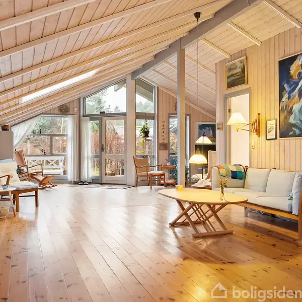 Midt i det smukke og fredelige Tengslemark Lyng finder du dette rummelige og stemningsfulde sommerhus, der forener natur, lys og plads på fineste vis. Huset er oprindeligt opført som et planethus og er siden tilbygget ad flere omgange, hvilket har skabt en bolig med masser af kvadratmeter, loft til kip og et fantastisk lysindfald fra både store vinduespartier og ovenlysvinduer.Indretningen byder på entré, badeværelse og køkken i åben forbindelse med husets hjerte – den store vinkelstue. Her er d