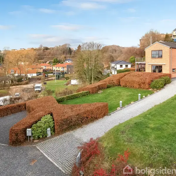 Drømmer du om en bolig, hvor kvalitet, udsigt og arkitektur går hånd i hånd? Så byder denne imponerende villa på Krintelsvej 8 i Bredballe dig velkommen. Her får du et sjældent udbudt Ove Larsen-byggeri, hvor hver eneste detalje bærer præg af solidt håndværk og en helt særlig atmosfære. Boligen er højt beliggende og har en storslået panoramaudsigt over Vejle Fjord og de kuperede Munkebjerg-skove – en udsigt, som ændrer sig smukt med vejret og årstiderne, og som kan nydes fra både bolig og terras