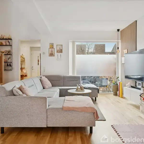 Velindrettet bolig med dynamisk planløsning Her i Roskilde får I et rækkehus med ejerlejlighedsstatus, hvor rammerne er lyse og overskuelige. Boligen fordeler sig over gode opholdsrum, fleksible værelser og derudover uderum på begge sider af huset, som naturligt trækker livet udenfor. Planløsningen skaber en tydelig opdeling mellem leverum og private rum, mens beliggenheden gør det let at få hverdagen til at hænge sammen med skole, indkøb, transport og natur tæt på. I stueetagen ligger et køkk