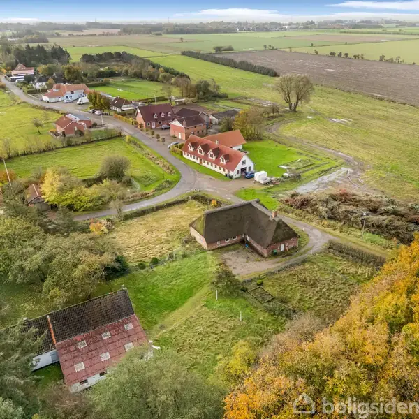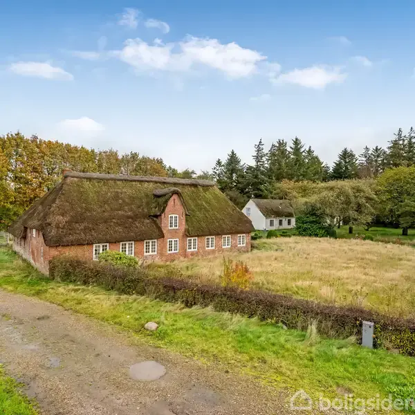 Hyggelig stråtækt ejendom på landet med masser af sjæl, plads og potentiale. Her får du en skøn kombination af klassisk landsbyidyl og rummelige omgivelser, hvor der både er plads til familieliv, hobbyer og mindre dyrehold.Boligen er opført i røde sten med et pænt stråtag, der giver huset et hyggeligt og autentisk udtryk. Murværket står i fornuftig stand, og selvom vinduerne er ældre trævinduer, bidrager de til ejendommens oprindelige landlige charme.Indenfor byder huset på en praktisk indretnin