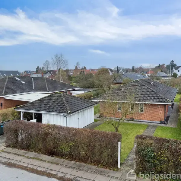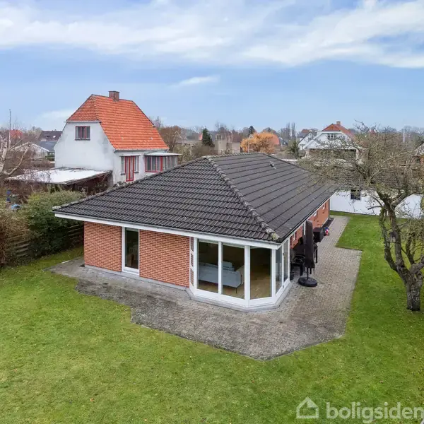 Denne villa fra 2001 byder på 130 velplanlagte kvadratmeter fordelt på ét plan, placeret på en 805 m² grund med god plads til udendørs aktiviteter. Boligen præsenterer sig med en klassisk arkitektur med røde mursten og mørkt tag, som harmonerer med nabolaget. Fra boligens store vinduespartier strømmer det naturlige lys ind og skaber en imødekommende atmosfære, som løber gennem alle rum. Her får man et hjem, der både rummer funktionalitet og plads til familieliv. Indretningen er gennemtænkt med