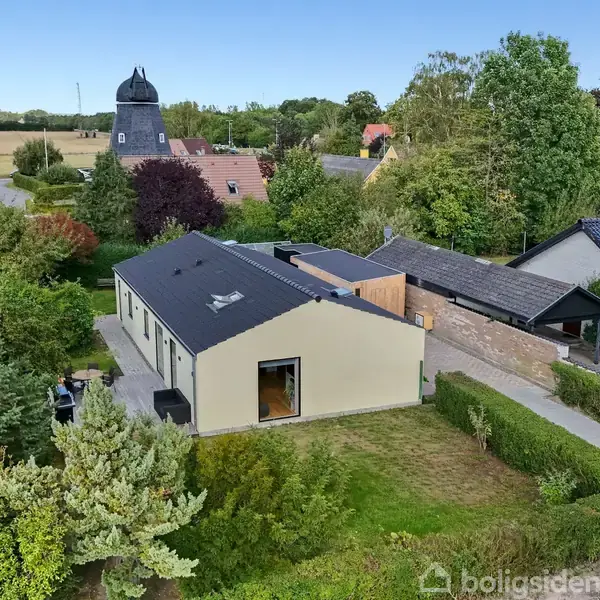 Der er noget særligt over den her bolig – en smuk nordisk stil. Hver en detalje er nøje udvalgt – som var det til et boligmagasin, men skabt til hverdagen. Den blev totalrenoveret i 2024 og fremstår som en bolig med karakter, kant og kvalitet. Gulvene er i massiv douglasgran – nogle op til fem meter lange – og det naturlige lys strømmer ind fra flere sider. Huset folder sig ud med plads til alle, ligger fredeligt og ugeneret på en lille, lukket vej i det hyggelige og historiske Kildebrønde. Kildebrønde er en af de ældste landsbyer i området – nævnt allerede i 1300-tallet, og gennem århundreder har kirken, kroen og møllen været faste holdepunkter i det lokale landskab. Fra haven har du kig til den fine mølle, og følelsen af landsby og historie blander sig med duften af æbleblomster og lyden af sommerens leg. Haven er præcis lige så gennemført, som boligen. En stor træterrasse med plads til grill, loungemøbler og parasol, græsplæne til leg og frugttræer i blomst. I drivhuset/orangeriet står både planter og havebord klar til de grønne fingre, kaffe og kage. En smuk træbygning byder på saunagus og rent velvære: sauna med glasparti og overdækket område med koldtvandsbassin – et spaunivers i egen have. Materialerne er nøje udvalgt: varme træsorter, naturlige overflader og flotte farver, der samler hjemmet i en nordisk ro og luksus – detaljer du kan mærke. Køkken og stue ligger i åben forbindelse under loft til kip, hvor ovenlyset sammen med de store vinduer fra gulv til loft trækker lyset og haven helt ind i boligen. Langbordet står ved det ene vindue, sofaen ved det andet – et rum, der føles let, levende og sanseligt. Køkkenet er snedkerbygget i massivt træ med fingertappede samlinger – smuk, stilren og ærlig æstetik. Forældreafdelingen rummer et stort soveværelse med skabsvæg i vinkel og udgang til terrassen, lad døren stå på klem og mærk morgenbrisen. En karakterfuld væg i rå mursten og loft til kip fuldender rummet. Badeværelset er indrettet med snedkerbygget møbel i egetræ, norsk marmor, Vola-armatur, rainshower og badekar – alt sammen med til at give en følelse af spa og velvære. Endnu et lækkert badeværelse og to værelser, til leg, fordybelse og søvn. En atmosfære og stilren bolig, som får den helt rigtige mavefornemmelse frem.