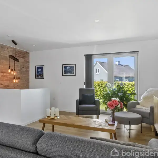 I den hyggelige landsby Veerst finder du denne indflytningsklare bolig, som byder på 72 veldisponerede kvadratmeter i stueplan samt en fuld kælder på yderligere 72 kvadratmeter. Her får du en bolig, der både er moderniseret og indflytningsklar, og som samtidig har masser af atmosfære med rå murstensvægge og synlige bjælker.I stueplan mødes du af et åbent køkken-alrum i forbindelse med stuen, hvor der er god plads til både spisebord og sofaarrangement. Den rå murstensvæg giver rummet karakter og