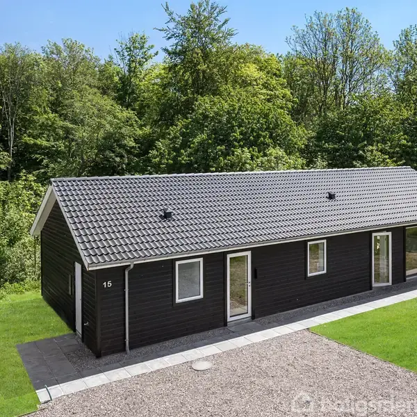 Åbent hus med tilmeldingskrav 7/2 - klik på billede - Dette lækre næsten helt nye helårs-/fritidshus er opført i Kronens Have ved Lohals by. Området er beliggende i udkanten af Lohals by, kun en lille kilometer fra havnen og stranden. Husene i området er opført i standard som helårshuse, men må anvendes til fritidsbrug, dvs. uden bopælspligt. De omkringliggende store statsskove giver dejlig læ for vind og vejr, så man kan nyde udendørslivet på terrassen med uhindret sol fra syd og vest. Dette hus ligger i 1. række til skoven med direkte indgang dertil. Huset er med træbeklædning, vinduer i træ med energiglas, tag af sorte betontagsten, opvarmes med fjernvarme og gulvvarme overalt, energimærke A2015. Haven er anrettet som naturgrund/vild blomstereng med minimal vedligeholdelse, hvilket harmonerer godt sammen med nærheden til skovene. Huset er bygget med henblik på udlejning som fritidshus, såvel som til privat benyttelse med ideel størrelse til at samle hele familien i hyggelige rammer. Der foreligger udlejningsaftale med Novasol husnummer G11265, som køber forventes at overtage og videreføre. Forhør gerne om lejepotentialet. Indeholder: Entre/fordelingsgang. 3 soveværelser, de 2 med hver 2 sovepladser, og 1 med 4 sovepladser, og fra soveværelset direkte udgang til det fri. Stort badeværelse med spabad og bruser. Mindre badeværelse med bruser. Vordingborg køkken i smuk olivengrøn farve, sammenhængende med spiseafdelingen, og i åben forbindelse med opholdsstuen, hvor der er 2 ekstra sovepladser på sovesofaen. Fra spiseafdelingen er der udgang til den store overdækkede terrasse mod syd/sydvest. Indbygget i huset er teknikrum med varmeinstallation, og med plads til opbevaring af grill mm. Et virkelig fint hus, som er nemt at overtage, da alt er stort set nyt, og man overtager indtægten fra den igangværende udlejningsaftale fra dag 1.