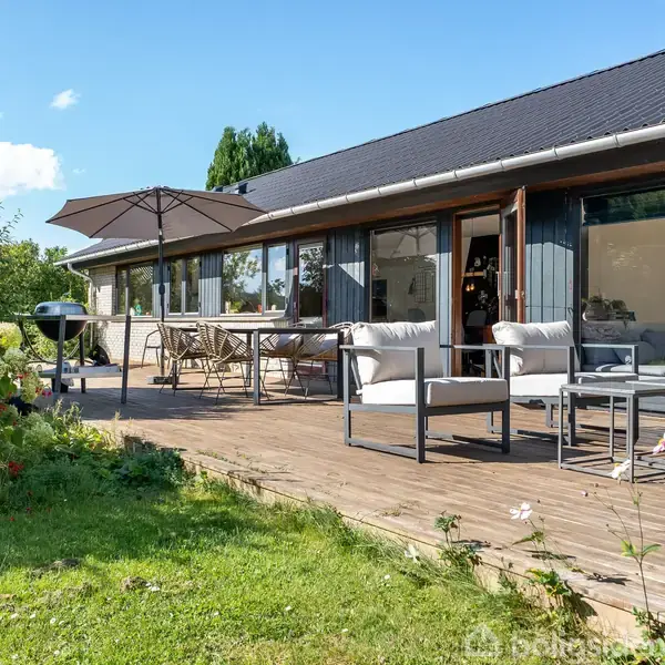 Velindrettet hus i Nagelsti – rolig beliggenhed tæt på Nykøbing F På Krummingen 8 finder du et rummeligt hus fra 1974, beliggende i den lille landsby Nagelsti, få kilometer fra Nykøbing Falster. Her får du en villa på 148 m² i ét plan, med moderniserede detaljer, stor have og en funktionel indretning, der passer ideelt til familien. Ejendommen er opført i lyse sten og ligger på en 1.361 m² grund, der er anlagt med græsplæne, træer, buske og hæk, som skaber privatliv og gode rammer for udelivet.