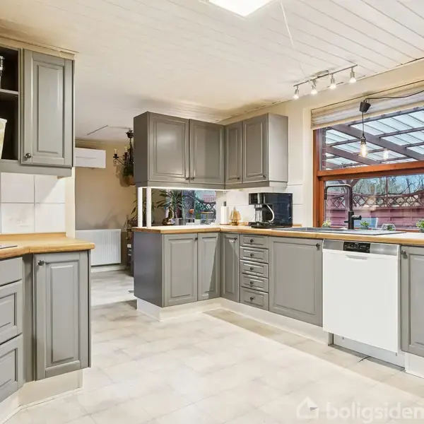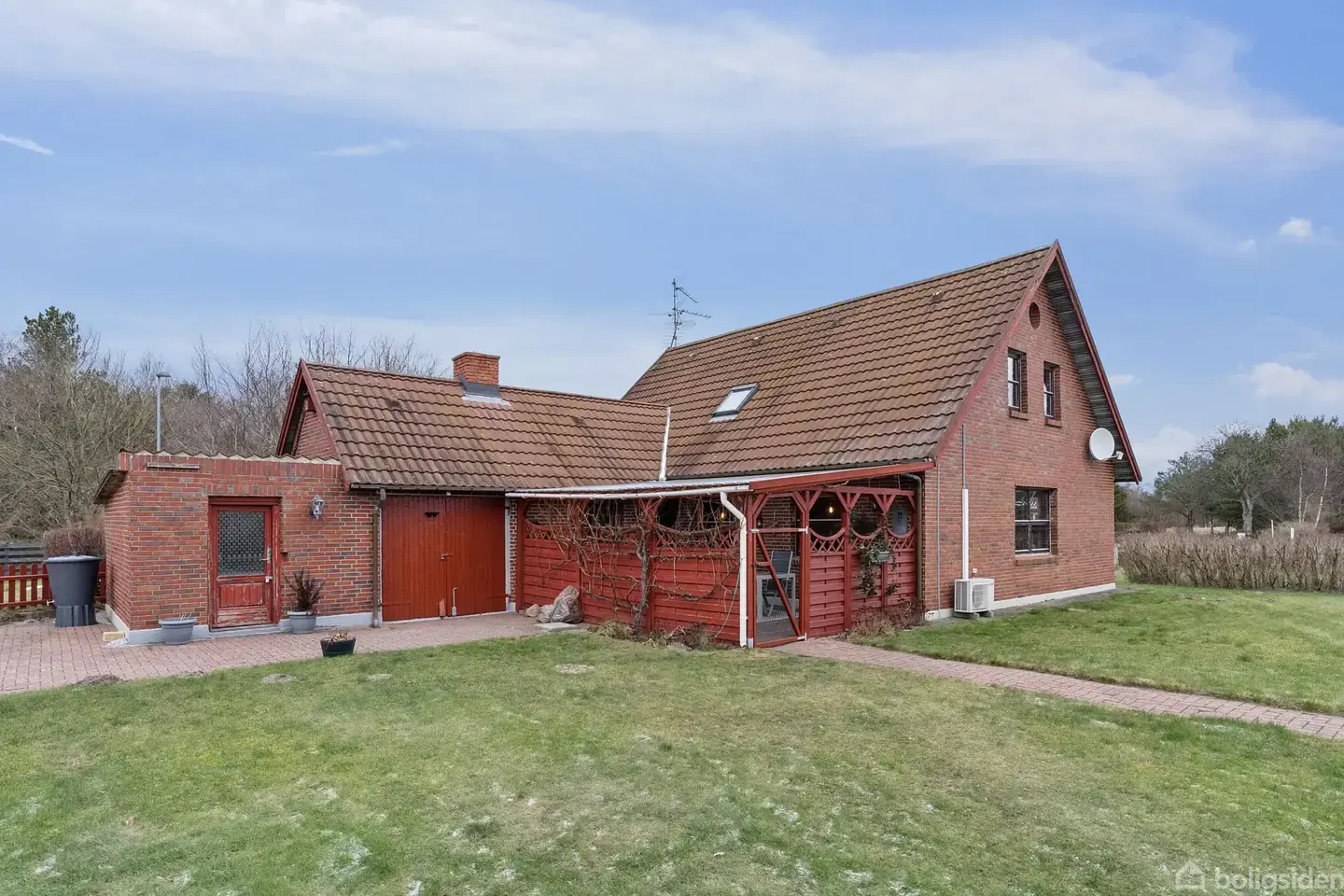 Pænt og velholdt 1 1/2 plans skalmuret hus med decratag, opført i 1947, ombygget i 1998 og senere. Boligareal 152 kvm. + 14 kvm. muret udhus, som er sammen bygget med huset. Desuden 27 kvm. overdækket terrasse og 15 kvm. muret udhus. Endvidere 2 stk. udhuse på h.h.v. 8 og 12 kvm. og 37 kvm. dobbelt carport. fra 1995. Indretning: Entre med trappe til 1.sal, spisestue med trægulv og fransk dør til opholdsstue, stort spisekøkken med fyldnings elementer, viktualierum, baggang, bryggers med bord skabe, pænt badeværelse med gulvvarme, skabs miljø og bruseniche. 1.sal: Repos, 2 værelser og stort soveværelse.Opvarmning: Varmepumpe luft/vand. Her får I meget hus for pengene... Kan også benyttes som flexbolig...Kontakt venligst Ejendomsmægler Helge Smidt for fremvisning...
