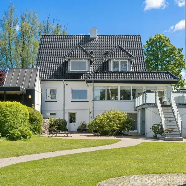 På en stor søgrund i det centrale Ry ligger denne velholdte villa med en unik beliggenhed, hvor vandet kan ses fra alle vinduer (med undtagelse af vinduer i kælderen) - huset er grundvandssikret. Grunden er beliggende ved den lille halvø, der rager ud i Lillesø ved Ry Havn og Marina, og man kan derfor spadsere til vandet og springe i fra egen grund. Ligeledes får man fornøjelsen af den naturskønne udsigt over vand og skov hver eneste dag, og side om side med naturen har man alle byens bekvemmeli