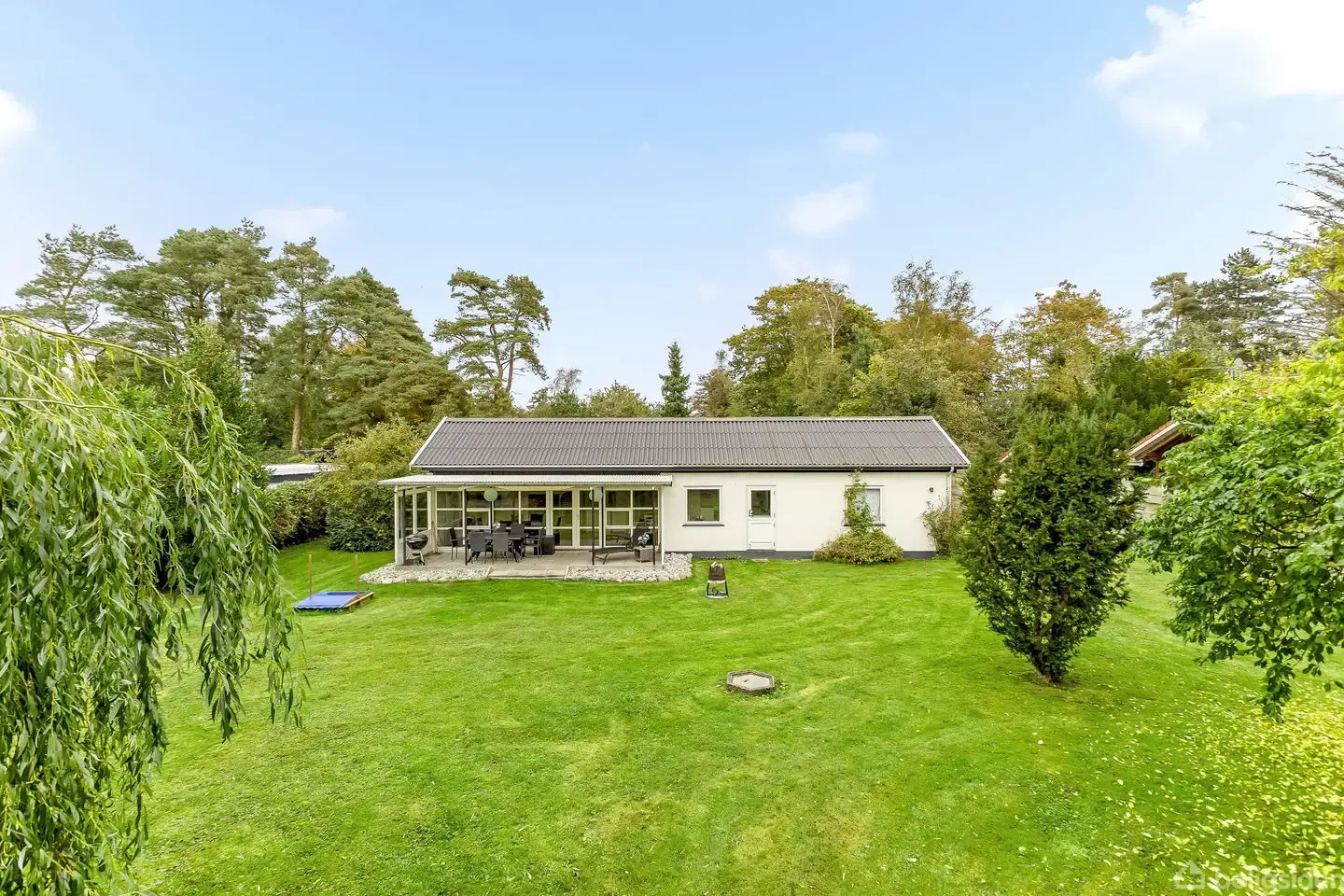 Dette fritidshus fremstår lyst og indbydende med en gennemtænkt planløsning, hvor køkken/alrum fungerer som husets naturlige samlingspunkt. Her er plads til både afslapning og samvær, og de store vinduespartier skaber et lysindfald, der forbinder inde- og udeliv. Sælger oplyser, at sælger i 2012 har moderniseret huset i flere rum!Køkkenet fremstår med lyse elementer, og de gode værelser giver rum til både familie og gæster.Badeværelset fremstår nydeligt med brus, toilet og vask.Grunden er velanl