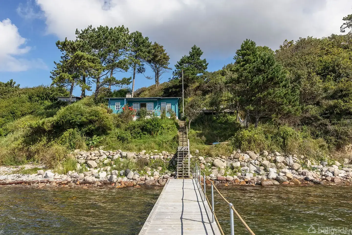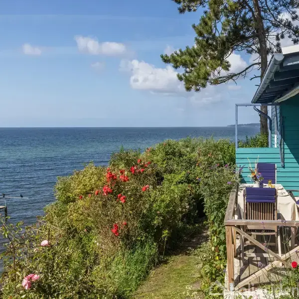 I vandkanten til Kalundborg Fjord – lige ved Røsnæs, lige midt i et eventyr om et ægte fristed. Sommerhuset er sydvendt og klimaet her på Røsnæs hører til det tørreste og mest solrige i Danmark. Faktisk så ligger dette vidunderlige sommerhus lige der i vandkanten til Kalundborg Fjord. Lille i størrelse – men enormt i herlighedsværdi. Det er så fantastisk et sted, at man ikke kan forestille sig en bedre ugeneret beliggenhed ud til vandet, end dette hus. Ejendommen er oprindeligt opført i 1927 som fristed for kunstmaler Martin Kaalund – væk fra storbyen, i nærhed til Vestsjællands uendelige naturskønne områder og ikke mindst i nærhed til det brusende berusende hav. For her er havet både dramatisk og stille – men aldrig rigtig dramatisk og aldrig kedeligt. Folk der kender dette fine område, vil nok alle være enige om, at her er havet helt perfekt. Grundens 506 m2 lægger sig på en lille repos til kystlinjen. Som en elegant hylde til dette autentiske sommerhus på 59 m2 (BBR). Alt virker så ægte og så naturligt. Så rigtigt. Nærmest berusende. Og sådan er det med dette sted. Det er et sted med store fortællinger om store kunstnere, der har holdt ferie her. Lad os bare komme til den måske nok mest flamboyante, nemlig at Asger Jorn, der var elev hos Kaalund, boede her i en periode, hvor han malede alle væggene i et tidligere strandhus (som desværre ikke består længere). Men ånden består stadig på stedet. Det er måske den der vælter en omkuld, når man kommer til enden af den private indkørelsesvej, og stedets kraftfuldhed byder en velkommen. Røsnæs er et eksorbitant naturområde, domineret af enge, skov, overdrev og høje kyststrækninger. Et kuperet landskab det strækker sig ud til Sjællands vestligste punkt med det ikoniske Røsnæs Fyr yderst på halvøen. På sydsiden af Røsnæs bugter kyststrækningen sig til den charmerende Kalundborg Havn, der som navnet antyder også er indsejlingen til områdets lidt større handelsby, der er en by i rivende udvikling. Ud over en overvældende og ikke så lidt dramatisk natur byder Røsnæs på fire vingårde, heraf Danmarks største vingård Dyrehøj Vingård. Ikke langt fra sommerhuset ligger den lille hyggelige havn Nyby Havn, som både har et badested, maritimt aktivitetshus, sauna og omklædning samt vinterbadeklub. I 2018 blev Røsnæs udpeget som et af Danmarks dejligste naturområder og derfor optaget i den nye Naturkanon. I juryens begrundelse stod indledningsvist: “Har du først været her, ved du, at det slet ikke er nødvendigt at drage hverken sydover eller nord for landets grænser for at finde dit zen i naturen.” Røsnæs er efter sigende det tørreste og mest solrige i Danmark, der skulle tilbyde ca. 100 solskinstimer mere og mindre regn end i resten af Danmark.
