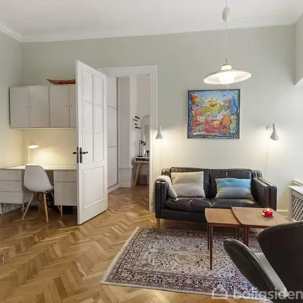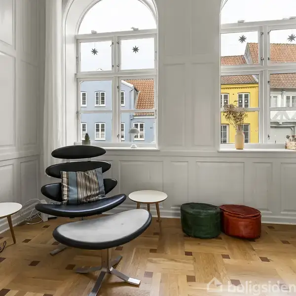 Den herskabelige lejlighed på Låsbygade har en karakter, som de færreste boliger kan matche. Stil, stemning og indretning spiller sammen og danner underlaget for en skøn familiebolig klar til indflytning på en af Koldings helt centrale gader i Latinerkvarteret, hvor man ovenikøbet får tilhørende parkeringsplads og en lukket garage. Lejligheden placerer sig i ejendommens stueetage og rummer 148 kvadratmeter. Beliggenheden er genial, for mens man bor inde midt i byens hjerte, tilgås lejligheden f