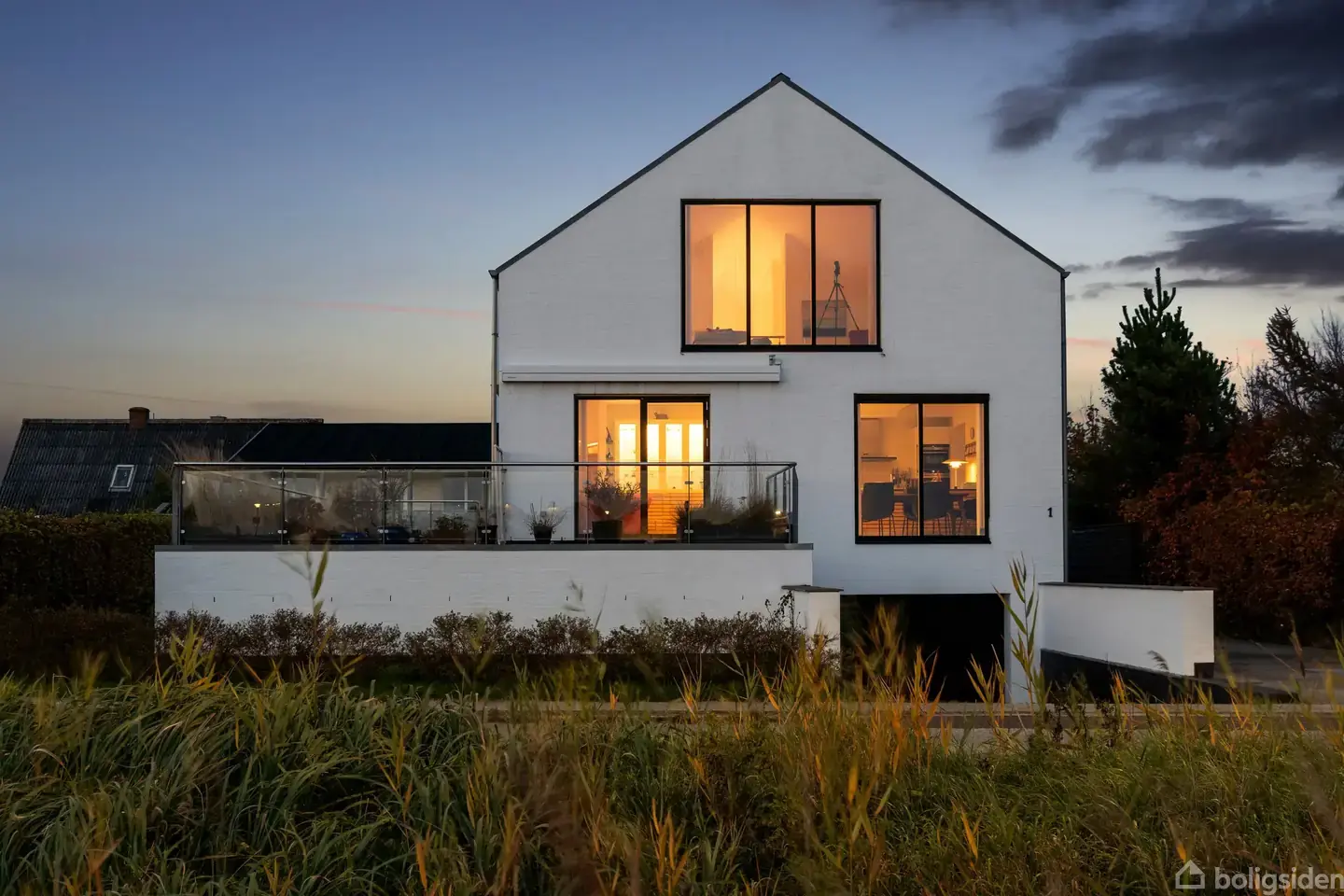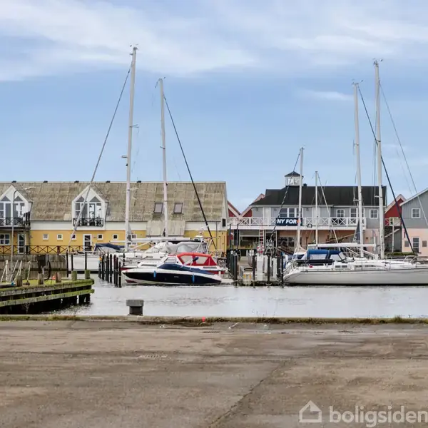 På en glimrende placering i Hals ligger denne moderne ejendom. Herfra oplever man livet på havnen helt tæt på, ligesom man dagligt betragter vandet, naturen og den mangfoldige skibstrafik, der sejler forbi på vej til og fra Aalborg. Det er PlusArkitekterne, der står bag ejendommens elegante, stilfulde udtryk og velovervejede rumfordeling. Bygningen blev opført i 2014 og er udført med omtanke for både funktion, æstetik og udsyn. Resultatet er et moderne hjem, som harmonerer med både udemiljøer og