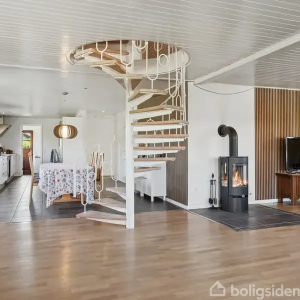 Stor, velholdt villa i Bredal Masser af plads, moderne komfort og klassisk charme kendetegner denne store 1960’er-villa, som ligger i fredelige omgivelser få kilometer nordøst for Vejle. Boligen tilgodeser især den pladskrævende børnefamilie, som får glæde af hele seks værelser, to badeværelser, et bryggers og et anseeligt køkken-alrum. Der medfølger en integreret garage, mens haven danner en dejlig ramme om udelivet for både børn og voksne. Ligeledes er boligen udstyret med en luft-til-vand-var