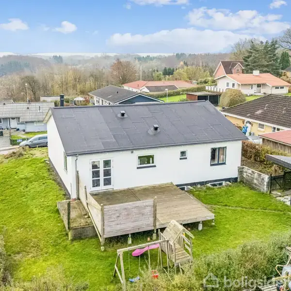 Drømmer du om en bolig, hvor natur, udsigt og moderne komfort går hånd i hånd? På Lærkevænget 3 finder du en rummelig og indbydende villa, der kombinerer roen fra de naturskønne omgivelser i Vissenbjerg med nem adgang til hverdagens fornødenheder. Villaen har et velindrettet boligareal på 160 m2 der fordeler sig med 123 m2 i stueetage og 37 m2 i kælderen. Villaen indeh. stor entre med nedg. Til kælder – badeværelse med lyse klinker/fliser og bruseplads – stort soveværelse ( tidl. 2 ) – børneværelse – flot nyt køkken/alrum med udgang til terrasse/have – stor opholdsstue i åben forb. med køkken/alrum. 53 m2 kælder – heraf 37 m2 godkendt beboelse. Kælderen indeh. bryggers med fast bord/vask/skabe/vaskemaskine/tørretumbler – dejligt lyst badeværelse med bruseniche – værelse med direkte udgang til haven – disp. rum. Kælderen har god rumhøjde og både indv. og udv. op-/nedgang Villaen er gennemgribende renoveret inden for de seneste par år – ny tagbelægning, delvis nye døre/vinduer, nye gulve i stueetagen med træ/klinker og gulvvarme, nye træbeton-lydlofter delvis med indbygningsspot, efterisoleret i gulve i stueetagen og loft, samt omfangsrig renovering af le-/varmeinstallationer. Villaen opvarmes fjernvarme. 24 m2 carport og 16 m2 udhus En dejlig villa – velbeliggende og med storslået udsigt til den flotte natur – med kort afstand til bykernen, hvor både handlemulighederne og Vissenbjergs Idræts- & Kulturcenter ligger. Der er også institutioner og lokal skole inden for kort afstand. Gode busforbindelser til og fra Vissenbjerg og kort afstand til den Fynske motorvej. En velplejet og velbeliggende villa – vi fremviser gerne!
