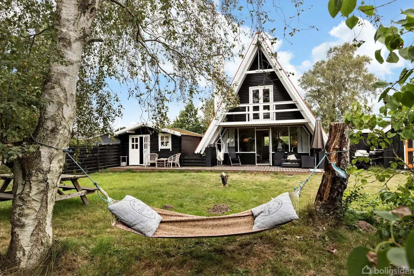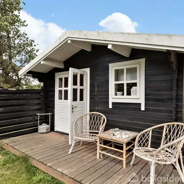 Åbent hus med tilmeldingskrav 4/2 - klik på billede - Hyggeligt og velholdt sommerhus tæt på stranden i Fjellerup. Kun 300 meter fra den populære sandstrand i Fjellerup finder du dette charmerende og løbende moderniserede sommerhus. Her er rammen sat for skønne ferier og weekender – hvad enten du drømmer om afslapning, natur eller hyggelige stunder med familie og venner. Når du træder indenfor, mødes du af en lys og indbydende stue i åben forbindelse med køkkenet. Herfra er der udgang til en dejlig overdækket terrasse, som indbyder til lange sommeraftener med grill og hygge. I stueplan findes også et pænt badeværelse. På første sal er indrettet to gode værelser, hvoraf det ene har direkte adgang til en hyggelig altan. Derudover medfølger hele to gæstehuse med ekstra sovepladser – perfekt til overnattende gæster eller større børnefamilier. Udenfor byder grunden på nem vedligeholdelse, flere store træterrasser, carport og redskabsrum. Her er god plads til både leg, afslapning og udeliv. Beliggenheden er i top – tæt på strand, skov og blot en kort køretur fra Djurs Sommerland og de mange oplevelser, Djursland har at byde på. Et sommerhus der virkelig oser af hygge, og hvor man straks føler sig hjemme.