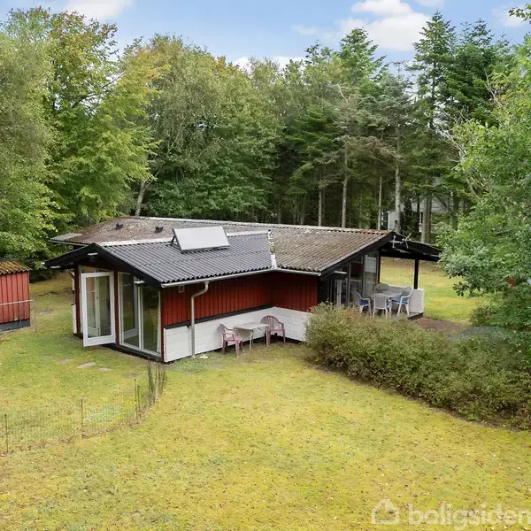 Åbent hus med tilmeldingskrav 2/2 - klik på billede - Velholdt og hyggeligt sommerhus, som er indrettet med flere gode detaljer b.la. loft til kip og teglstensgulve i den oprindelige del af sommerhuset. Her er 2 gode stuer, 2 værelser og lyst køkken og badeværelse. Sommerhuset er velbeliggende på ugeneret grund i 2 række til Fjorden med kun 150 meter til badestrand. Endvidere stort udhus, der er indrettet som anneks samt stor, ugeneret grund, som er hyggeligt anlagt med flere gode zoner. Sommerhuset er beliggende i 2 række til Fjorden med kort afstand til børnevenlig badestrand i attraktivt sommerhusområde på Thyholm mellem Hvidbjerg og Struer. Serup strand er et dejligt naturskønt område med varieret natur med børnevenlig strand og engområder. Området indbyder til vandre- og cykelture. Bl.a. er der vandretur mellem Søndbjerg Strand og Tambohuse (8 km tur/retur). Derudover er der gode fiskemuligheder i nærområdet - feks. ved Oddesund - ca. 7 km syd for Serup Strand. Også velegnet til diverse vandsportsaktiviteter, kajak m.v. Sommerhusets 72 m2 indeholder 2 sammenhængende stuer i åben forbindelse med lyst og velholdt køkken fra 2010. Den oprindelige opholdsstuer er indrette med loft til kip og stort sydvendt vinduesparti med udgang til delvist overdækket terrasse, hvorfra der er kig til Fjorden. Spisestuen, som er tilbygget i 1990, har udgang til den vestvendte ende af baghaven, som byder på gammel, tæt beplantning med hyggelige stier. Endvidere 2 lyse værelser, som begge er indrettet med 2 sovepladser, samt lyst badeværelse fra 2010, som er indrettet med hvide elementer, muret bruseniche og plads til vaskemaskine. 24 m2 stort udhus, som i dag er indrettet som anneks med rustikloft, træbeklædte vægge, gulvtæppe og ekstra sovepladser (ej boligareal). Bemærk den velanlagte grund, som byder på gode parkeringsmuligheder, sydvendt terrasse, som er delvist overdækket og med kig til Fjorden samt ”den lille skov” af tæt beplantning og med hyggelige stier. Inventar medfølger som beset, dog undtaget personlige ejendele herunder haveskulpturer. Sommerhuset er ikke tilmeldt udlejning – estimat fra Feriepartner foreligger, forhør nærmere.