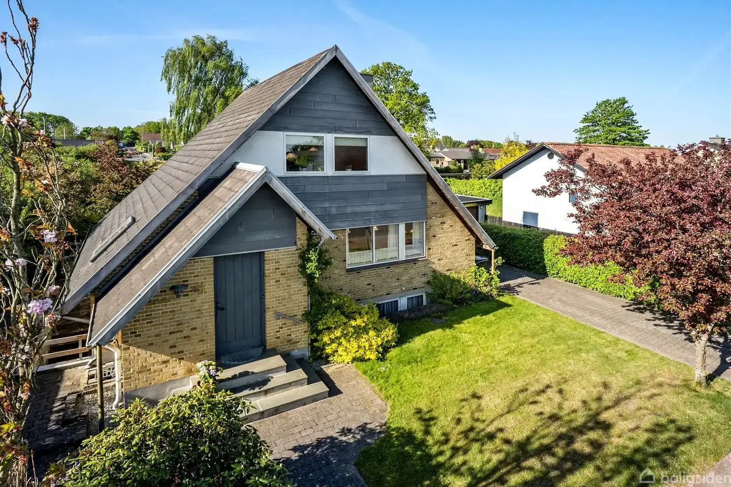 Åbent hus med tilmeldingskrav 12/2 - klik på billede - Vi kan nu udbyde charmerende villa på dejlig beliggenhed i fuglekvarteret. På Lærkevej 43 er der kort afstand til børnepasning, indkøb og centrum samt skolen som du kan gå mod ad stien for enden af baghaven. Til huset er den dejligste sydvendte have med flotte buske, fuldvoksne træer og stenbelagt terrasse. Haven er fuldstændig lukket af og privat. I indkørslen er carport og på havesiden af huset er en dejlig overdækket terrasse. Du træder ind i vindfang, hvor overtøj kan hænges op og derefter træder man videre ind i fordelingsgang. Der er badeværelse, indgang til rummeligt og lyst køkken med spiseplads samt stor dejlig stue med udgang til den overdækkede terrasse. Fra stuen er der indgang til stuens eneste værelse som er etableret på et senere tidspunkt og kan fjernes igen hvis stuen ønskes udvidet. På 1. sal er der 3 gode værelser samt et badeværelse og et lille depotrum. I kælderen er der vaskerum, værksted og det gamle fyrrum. Vi glæder os til at fremvise denne skønne villa, så tag fat i os i dag for en fremvisning!