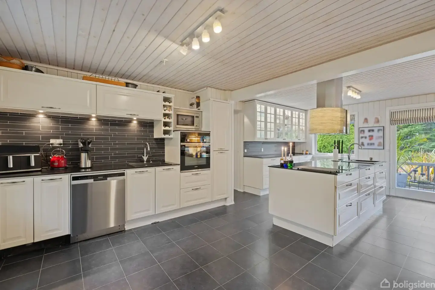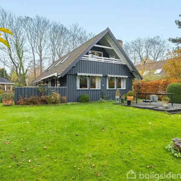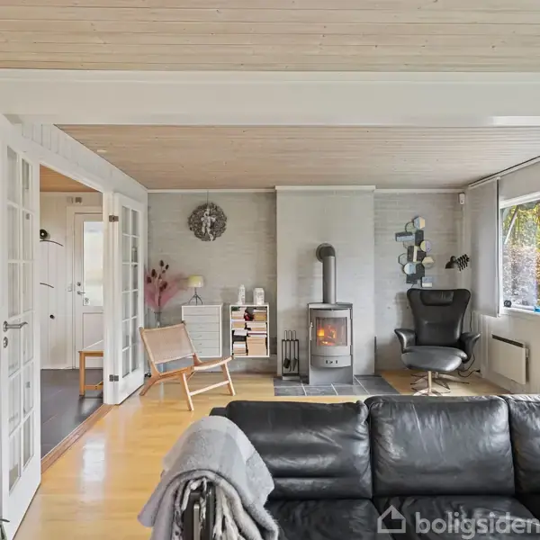 En charmerende og hyggelig familievilla med sjæl og varme – mørkegråt træ, hvide vinduer og den særlige ro, der kun findes i et hjem, hvor livet har fået lov at sætte sig. Her er 184 virkelig fine kvadratmeter fordelt på 1,5 etage - 27 år under samme tag fortæller sin egen historie om trivsel og mavefornemmelse. Huset taler i træets eget sprog – roligt, naturligt og fuld af karakter – og de store træer i haven føjer sig smukt ind i fortællingen. Udenfor folder træterrasserne sig ud omkring huset og skaber et sammenhængende frirum. Der er en solskinsplet til hver stund – kaffe i morgensolen, et hvil i liggestolen eller grill og vin under aftenhimlen. Haven er grøn, hyggelig og lige til at pynte med krukker og blomster. Den lille pavillon indbyder til pauser, mens carport og garage giver plads til både hverdag og hobby. Beboerne på den lukkede vej hilser, smiler og hjælper – et sted, hvor naboskabet stadig betyder noget. Stranden ligger kun få skridt væk, og grundejerforeningens fælles strandgrund med bord og bænke giver direkte adgang til sand, vand og solopgang. Håndklædet i tasken, paddelboardet under armen – så står du dér med fødderne i det bløde sand. Den hyggelige stemning udefra fortsætter selvfølgelig indenfor, hvor alt emmer af varme, personlighed og god atmosfære. Hvide trævægge, pæne gulve og et gennemgående lys binder rummene sammen og giver huset sin særlige atmosfære. Køkken/alrummet breder sig som et naturligt samlingspunkt – stort og indbydende med rum til alle. Her står det hvide samtalekøkken med vitrineskabe, hvor lyset spiller i porcelænet og glassene. Den mørke bordplade matcher smukt det mørke klinkegulv, og over den store køkkenø svæver en flot frithængende emhætte. Et tryk på lågen, og koldt vand risler frem, isterninger klirrer let i glasset – små øjeblikke af hverdagsluksus. Stuen ligger i forlængelse heraf med udgang til terrassen, en diskret grå filsning på væggen og brændeovnen som husets hjerte på kølige dage. I stueplan findes også et af husets fire værelser og et lyst, indbydende badeværelse, hvor alt fremstår gennemført og velvalgt. Førstesalen åbner sig mod lyset – her venter et soveværelse med udgang til solrig sydvendt balkon – lad døren stå på klem og få morgenbrisen helt ind. To værelser og et lyst toilet. En etage fyldt med luft, lethed og den samme hyggelige vibe, som præger hele huset. Mavefornemmelsen finder ro her – midt mellem træets varme og vandets nærhed.