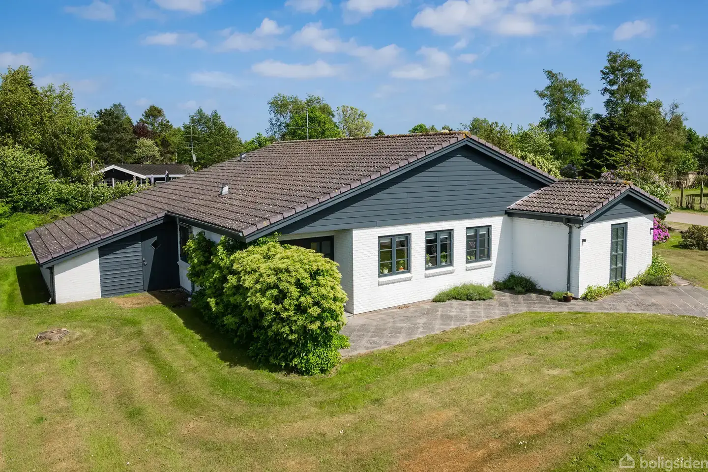 Rummeligt sommerhus beliggende på en stor grund med masser af plads til udendørslivet. Haven er overkommelig og nem at holde, og ejendommen fremstår både velholdt og indbydende. Indenfor byder boligen på en åben og lys planløsning, hvor køkken, spisestue og opholdsstue er naturligt forbundet. Loftshøjden i stuen skaber en luftig atmosfære, og de brede vinduespartier lader lyset strømme ind og giver en smuk forbindelse til haven og den skønne terrasse. Boligen rummer en entré, to soveværelser o