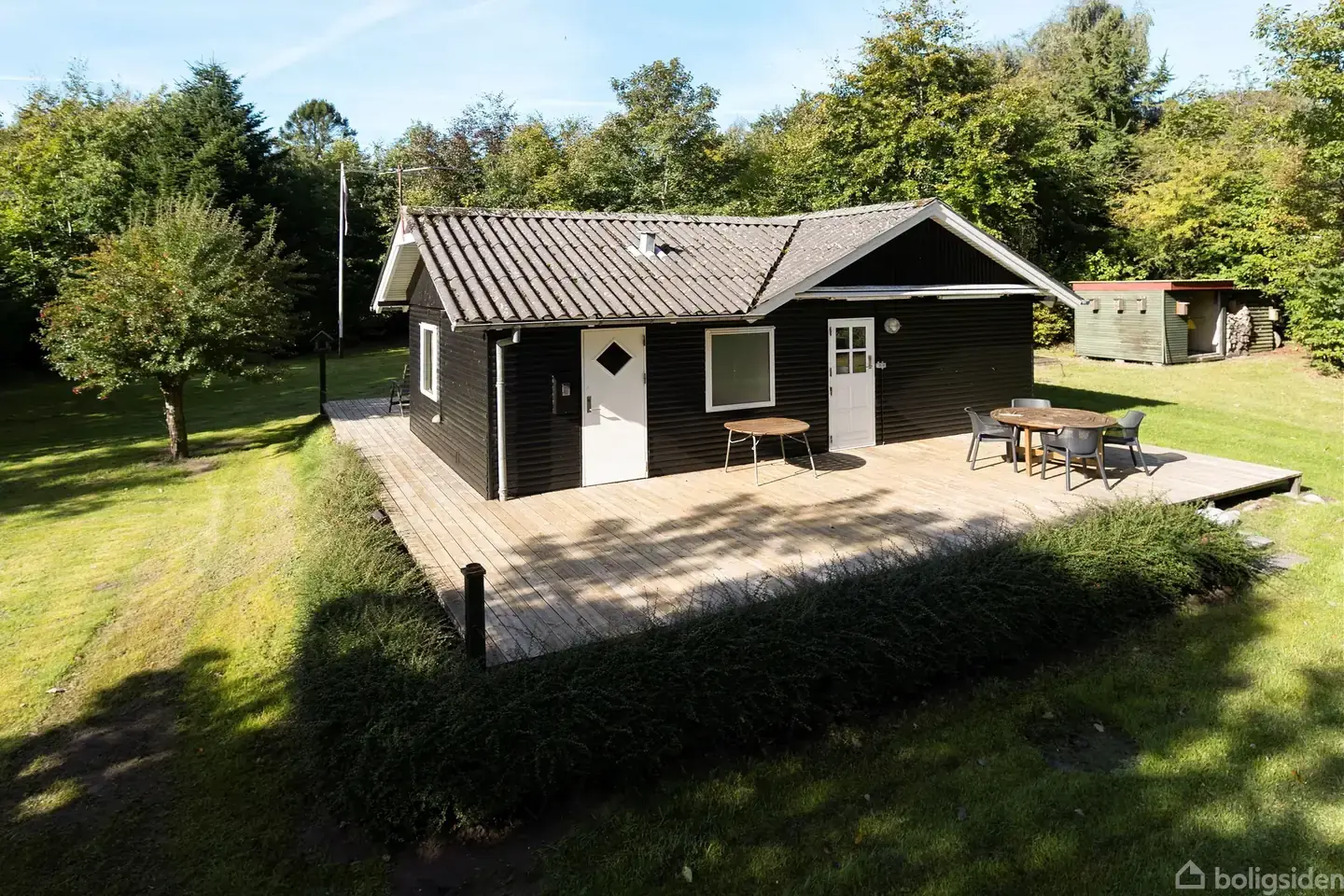 Åbent hus med tilmeldingskrav 1/2 - klik på billede - På Laksevej 4 i det fredelige sommerhusområde Holmmark finder du dette indbydende fritidshus, ideelt placeret i naturskønne omgivelser. Her er du tæt på skov, eng og åbne vidder, hvor roen sænker sig, og hverdagen kan få et velfortjent pusterum. Området er stille og familievenligt med god plads til både leg og afslapning. Der er kun få kilometer til Gedsted, hvor du finder dagligvarebutikker og øvrige fornødenheder. Der er tale om et indflytningsklart fritidshus på 70 veludnyttede kvadratmeter med en gennemtænkt planløsning. Huset rummer to værelser, som gør det velegnet til børnefamilien eller parret med gæster. Det moderne og smagfulde køkken fremstår lyst og funktionelt og er i åben forbindelse med opholdsstuen, hvilket skaber et naturligt samlingspunkt i hjemmet. Her er plads til både spisebord og sofaarrangement – perfekt til hyggelige feriedage året rundt. Grunden er hyggelig og overskuelig med grønne omgivelser og god mulighed for udeliv. Der er flere solrige kroge samt potentiale for leg og afslapning. Her kan du nyde morgenkaffen til fuglefløjt og aftensmaden under åben himmel. Terrassen indbyder til grill og afslapning med udsigt til naturen, som nærmest banker på døren. Det perfekte sted til at koble af fra hverdagen og mærke årstidernes skiften.