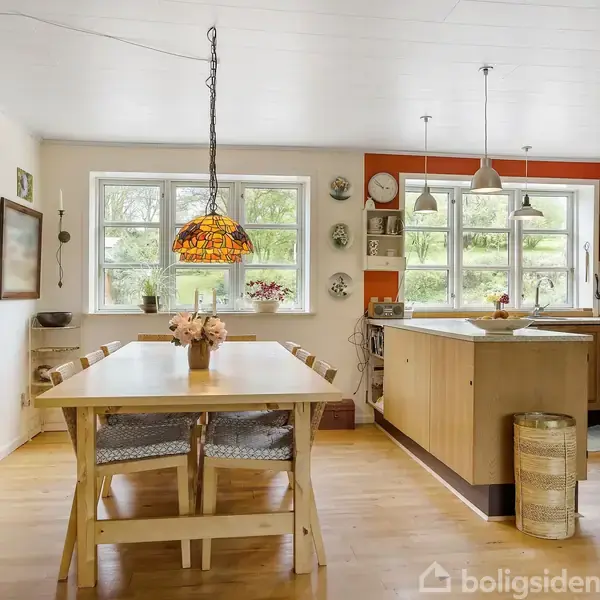Åbent hus med tilmeldingskrav 3/2 - klik på billede - Om denne ejendom er der så meget at fortælle, at vi her kun kommer med lidt stikord. Kom selv med ud og oplev dette skønne sted. Den rummelige bolig på hele 270 m2 fremstår ligesom resten af ejendommen særdeles hyggelig og indeholder bl.a. 7 værelser, 3 stuer, heraf 2 med brændeovn, 2 badeværelser og gæstetoilet. I den tidligere zoneterapiklinik med egen indgang kan man f.eks. have kontor, Airb&b eller ungeafdeling. Den store lade brugers til ekstra gildesal, værksted og vinteropbevaring af grøntsager. Her er mark med god muldjord, her er frugthave med 44 træer og køkkenhave med 22 bede samt mulighed for dyrehold, så her kan du blive så godt som selvforsynende. Det hele har været drevet økologisk de sidste 45 år. Den omkringliggende have/park giver en livsbekræftende oplevelse af årstidernes gang. Hver gang du kommer op på den sydeksponerede bakken, belønnes du af en enestående udsigt over Håsum Enge, Sdr. Lem Vig, Venø Bugt og på den anden side Struer. Lige udenfor døren går en markvej ud i Håsum Enge, som er en del af ”Naturpark Flyndersø – Sdr. Lem Vig”, og herfra går forgreninger af vandreture og cykelruter ud i området. På 5 min. kan du boltre dig i Limfjorden ved Hostrup Strand, en af områdets bedste badestrande. Lokalbussen kan tages lige udenfor døren, som skolebus til Lem eller til ungdomsuddannelserne i Skive. Som det fremgår, er her mulighed for et på alle måder rigt liv og ejendommen er klar til at byde den næste familie velkommen.