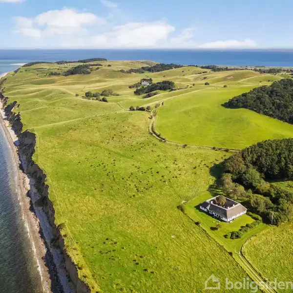 ”Sandballegård” ligger usædvanligt naturskønt kun 100 meter fra kysten i det smukke landskab i Nordby Bakker på Nordsamsø. Fra ejendommen er der en yderst smuk udsigt til havet mod vest med bakker og varieret natur i forgrunden. Store dele af nordøen mod nord og vest er fredet natur, og udover fredningen er området klassificeret som Natura 2000 – særligt beskyttet natur. Den velbevarede og stråtækte ejendom er løbende renoveret og forbedret så den i dag fremstår i utrolig god stand med mange fine detaljer bevaret. De fire længer indrammer en helt klassisk gårdsplads med stenpikning og portrum mod øst. De to længer med beboelse ligger mod syd og vest, så man har glæde af den flotte udsigt. Beboelsen på hele 202 m2 er charmerende indrettet med gode opholdsrum og plads til mange overnattende med hele fem værelser. Den største af stuerne ”pejsestuen” ligger med udsigt mod havet; her er plads til både langbord samt de mere behagelige siddemøbler. I ”pejsestuen” har nuværende ejere fået udskiftet gamle staldvinduer med speciallavede sprossede vinduer der matcher de øvrige vinduer i ejendommen. I denne ende af huset ligger to af husets værelser. Det landlige køkken med spiseplads ligger midt i huset med gennemgående lys, flotte trægulve og malede lofter. Ved mellemgangen ligger husets to meget fine badeværelser med gulvvarme; det ene med badekar og det andet med bruseniche. I den sydlige fløj ligger der to værelser samt endnu en stue med fine trægulve og brændeovn. Sidste værelse ligger ved køkkenet; også med trægulv der er isoleret. Huset opvarmes af luft/luft varmepumper, el-paneler i værelser samt brændeovn og åben pejs. De 2 gamle staldlænger er udhusareal og anvendes nu til opbevaring. Grunden henligger med græs og lidt beplantning. Her skal især det store terrasseområde nævnes hvor man har glæde af udsigten mod havet og desuden en petanquebane blandt de mange fine frugttræer. Fra ejendommen er der 120 meter til stranden ved ”Vandstedet”. Der er ca. 2½ km. til Nordbys idyl med gadekær, klokketårn og spisesteder mv. Et par kilometer syd for Nordby ligger Maarup med indkøbsmuligheder og herudover cykelsti sydpå til resten af øen. Huset kan frit anvendes til både helårs- eller fritidsbolig