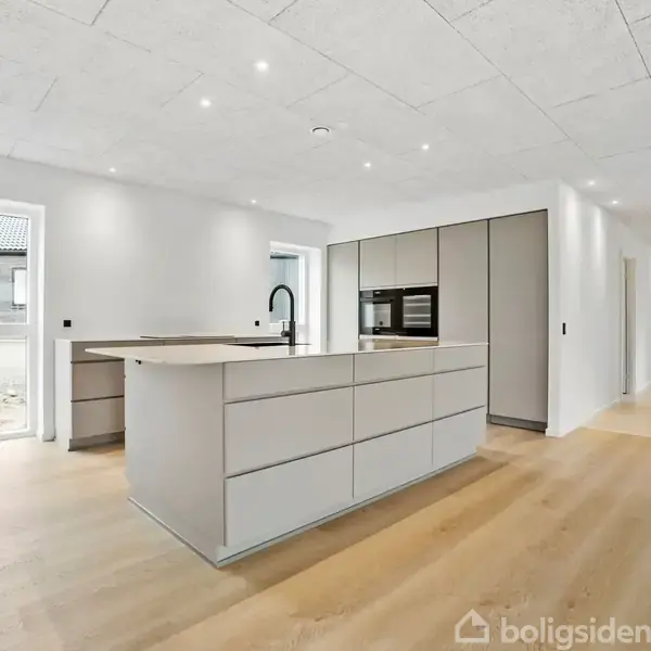 Åbent hus med tilmeldingskrav 7/3 - klik på billede - Helt tæt på skoven og på en rigtig god beliggenhed i Sejs-Svejbæk ligger denne nyopførte kvalitetsvilla. Du ankommer til boligen og kan køre ind i den store opvarmede garage. Herfra går du tørskoet og direkte ind i husets bryggers. Boligen har også en rigtig fin entre. Entreen fungerer som fordelingsgang til en lækker børne og ungdomsafdeling. Her er der 3 store værelser og 1 kontor samt et lækket badeværelse. I værelserne er der lavet walk-in skabe hvilket giver en bedre udnyttelse af pladsen. Fra gangen går du videre ind i et stort og lyst køkken-alrum med store glaspartier og med direkte udgang til haven fra både køkken og stue. I køkkenet er der lavet et fantastisk viktualierum/depot. Terrasserne ud fra alrum og stue er overdækkede. I denne ende af huset finder du også forældreafdelingen som består at et stort badeværelse med dobbelt bruser og kar, et walk-in og et skønt soveværelse. Denne villa oser af solid kvalitet og har en beliggenhed helt tæt på skoven, vandet, skolen, sportshallen og daginstitution. Der er kort afstand til Silkeborgs attraktive byliv og på 3 min er du på motorvejen mod Århus eller Herning. Book din fremvisning i dag.