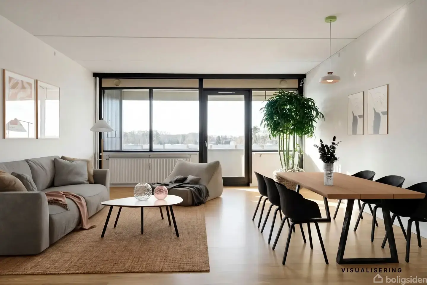 Velkommen til en rummelig og velindrettet lejlighed i en populær og veldrevet ejerforening. Allerede når du træder ind, mødes du af en indbydende entré med god plads til opbevaring og en naturlig fordeling til boligens øvrige rum. Her fornemmer man straks den behagelige atmosfære og de veludnyttede kvadratmeter. Stuen er stor og lys med et skønt naturligt lysindfald og god plads til både sofa- og spiseafdeling. Herfra er der direkte adgang til en dejlig altan, hvor de grønne omgivelser danner en rolig ramme om både morgenkaffen og de lune aftener. Køkkenet fremstår lyst og indbydende med fine hvide låger og masser af opbevaringsplads. Her er tænkt i funktionalitet og hverdagens behov, og det rummelige køkken giver endda plads til et mindre spisebord – perfekt til hurtige måltider eller hyggelige stunder i hverdagen. Lejligheden rummer to gode soveværelser. Badeværelse og toilet er samlet i ét pænt og funktionelt rum, mens der derudover findes et separat vaskerum med mulighed for etablering af vaskefaciliteter. Boligen ligger i en veldrevet forening med gode fællesfaciliteter såsom elevator, cykelkælder, fælleslokale og fine parkeringsforhold. Der medfølger en privat parkeringsplads til lejligheden. Området er naturskønt med kort afstand til strand, skov og stisystemer, og samtidig er der nem adgang til indkøb og offentlig transport, så hverdagen bliver både bekvem og fleksibel. Her får du en velholdt og indflytningsklar bolig med god plads, lyse rammer og en attraktiv beliggenhed tæt på både natur og byens faciliteter. Kontakt os allerede i dag for en fremvisning – vi glæder os til at byde dig velkommen.
