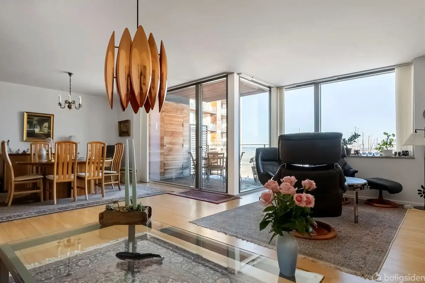 I første parket til Aarhus Lystbådehavn, i det eksklusive Langelinieparken, udbydes nu denne imponerende liebhaverlejlighed. Ejendommen fra 2003 er placeret i et af Aarhus’ mest attraktive kvarterer – med skov og strand som nærmeste nabo og imellem midtbyen, Trøjborg og Aarhus Ø. Lejligheden er beliggende på 1. sal og rummer 149 veldisponerede kvadratmeter med en betagende udsigt over vandet og lystbådehavnen. Planløsningen er gennemtænkt og harmonisk med to rummelige soveværelser, to gode badeværelser, separat vaskerum samt et åbent køkkenalrum i forbindelse med opholdsstuen. Allerede i den indbydende entré fornemmes den gennemførte kvalitet og æstetik. Herfra åbner boligen sig mod det lyse køkkenalrum, hvor store panoramavinduer trækker havudsigten helt ind i rummet og skaber en helt særlig atmosfære. Køkkenet er fra Multiform og fremstår stilrent med kompromisløse materialevalg. Fra alrummet er der direkte adgang til en stor altan, hvor udsigten over vandet og Aarhus Ø kan nydes i fulde drag. Det ene soveværelse har desuden udgang til en privat altan, mens begge værelser byder på indbyggede skabe. Badeværelserne er udført i samme gennemførte stil med materialer fra Multiform, væghængte toiletter og rummelige brusenicher. I forlængelse af det ene badeværelse findes et praktisk vaskerum. Til lejligheden hører privat parkeringsplads i aflåst parkeringskælder med elevator direkte til etagen samt eget depotrum. Ejerforeningen er veldrevet og tilbyder attraktive fællesfaciliteter såsom selskabslokaler, gæsteværelser og grønne opholdsarealer – alt sammen med mulighed for sociale arrangementer for beboerne. En bolig for den kræsne køber, der værdsætter kompromisløs kvalitet, arkitektonisk elegance og en beliggenhed i absolut særklasse.