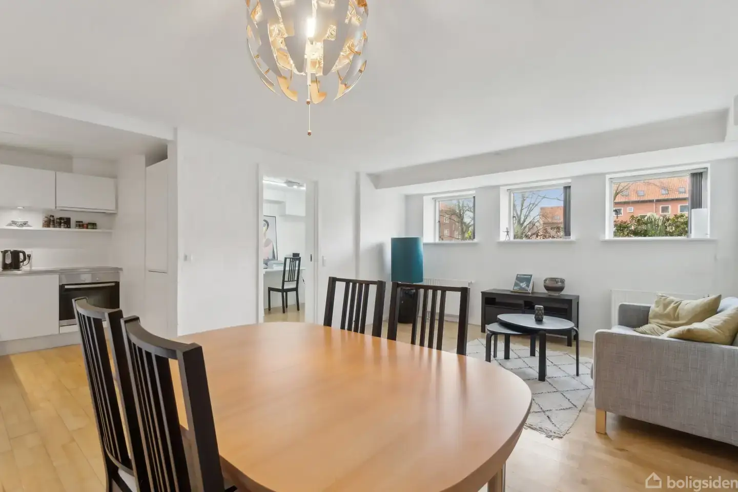 Drømmer du om en rummelig og funktionel bolig tæt på både byliv og grønne arealer? Så byder Langenæs Allé på en sjælden mulighed for at få det bedste af begge verdener. Her får du en velholdt 3-værelses lejlighed fra 2007 med masser af plads, en god planløsning og flere anvendelsesmuligheder.Lejligheden fremstår lys, velholdt og utrolig veludnyttet. Allerede ved indgangen mødes du af en rummelig entré og fordelingsgang med god plads til opbevaring og overtøj. Herfra er der adgang til boligens øv