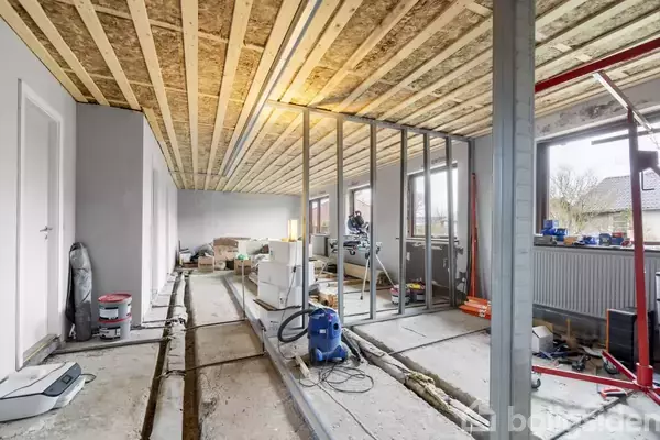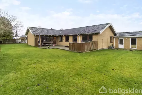Fem km syd for Kolding ligger Vonsild, og her udbydes en stor etplansvilla på 170 m2. Huset er under renovering, og derfor kræver boligen, at I har mod på at færdiggøre det, der er igangsat – det er potentielt muligt at tilkøbe materialer. Planløsningen byder på en entré, et bryggers, et badeværelse, et gæstetoilet, et køkken-alrum og et stort stuemiljø samt et stort rum hvor der tidligere har været værelser og som man selv skal igang med at bygge op på ny. I præsenteres for et stort hus fra 19