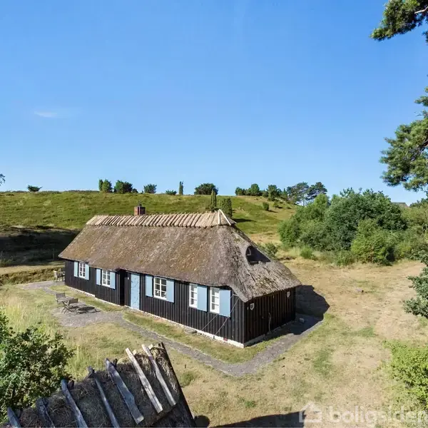 I hjertet af Tibirke Bakker sælges dette charmerende stråtækte fritidshus, beliggende på en kæmpemæssig grund. Langetravs 11-15 består af 3 selvstændige matrikler på ca. 7.500 m2 hver, men udbydes som én samlet ejendom.Tibirke Bakker er et af Danmarks smukkeste sommerhusområder. Det er også et af landets første eksempler på et planlagt feriehusområde, hvor udviklingen af landskab og bygninger i mere end 100 år har været styret gennem servitutter og fredninger. Udgangspunktet for denne planlægning er en udstyknings-og bebyggelsesplan fra 1916, udarbejdet af arkitekt Ejnar Dyggve. Fritidshuset er et af Dyggves første fire huse. Det er bygget i 1917 med en tilbygning i 1932 samt en ombygning og modernisering i 1978, hvor der blev indrettet bad og nyt køkken. Huset er på 75 kvm i grundplan samt en udnyttet loftetage på ca. 20 kvm og med mulighed for en yderligere udnyttelse af loftetagen. Huset består af en stor stue med udgang til terrasse, med pejs og med opgang til overetagen, soveværelse med udgang til terrasse, køkken og badeværelse samt et depotrum. På 1.sal er indrettet soveværelse på ca. 12 kvm. med skabsgang. Det har stråtag, hvidmalede vinduer, og blåmalede skodder og døre. Udenfor er huset beklædt med lodret bræddebeklædning med sort imprægnering. De indvendige flader er malede i lyse farver. En del af møblementet stammer fra den oprindelige indretning, og er tegnet af Dyggve. På grunden er opført et lille spændhus på 10 kvm. med stråtag. Huset fremtræder i overordentlig god stand. Fra den lyngklædte Langetravs bakke, der er en del af ejendommen, er der en milevid udsigt over bakkerne, Ellemosen og Arresø.
