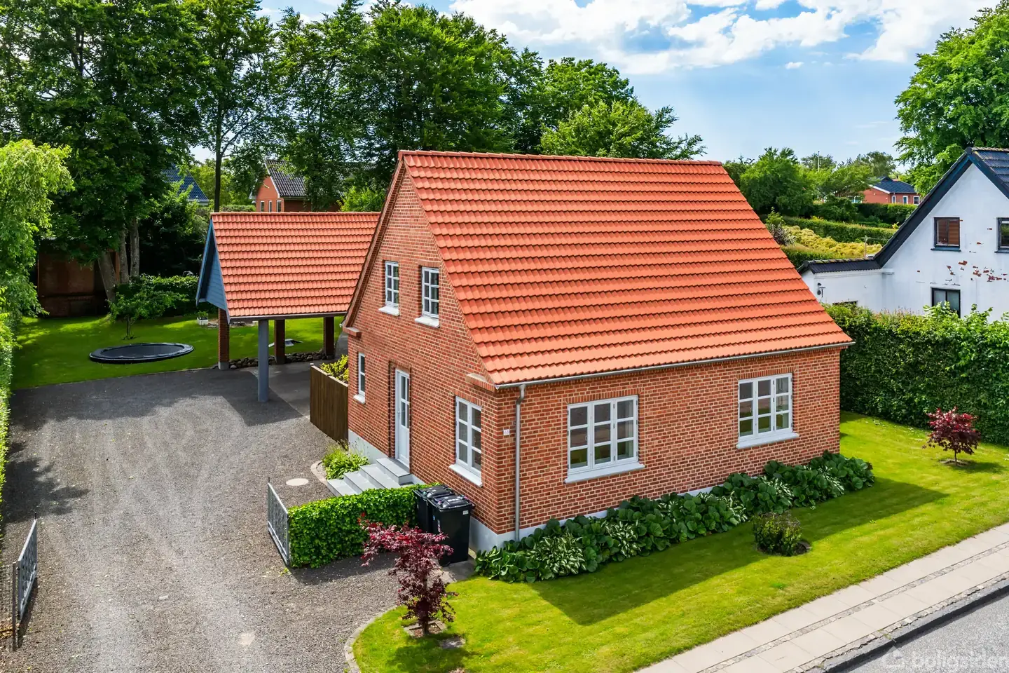 Velkommen til denne indbydende og velholdte ejendom, der fremstår lys og indflytningsklar med mange flotte detaljer. Ejendommen har fået beton tagsten i 2013 og er omfuget i 2015, hvilket giver et solidt og tidløst udtryk.Man bydes velkommen i entréen, der imponerer med loft til kip, synlige bjælker og et flot lysindfald. Herfra er der adgang til det praktiske bryggers og et lækkert badeværelse fra 2023, som byder på en rummelig bruseniche og ovenlysvindue, der giver et skønt dagslys.Husets hjer