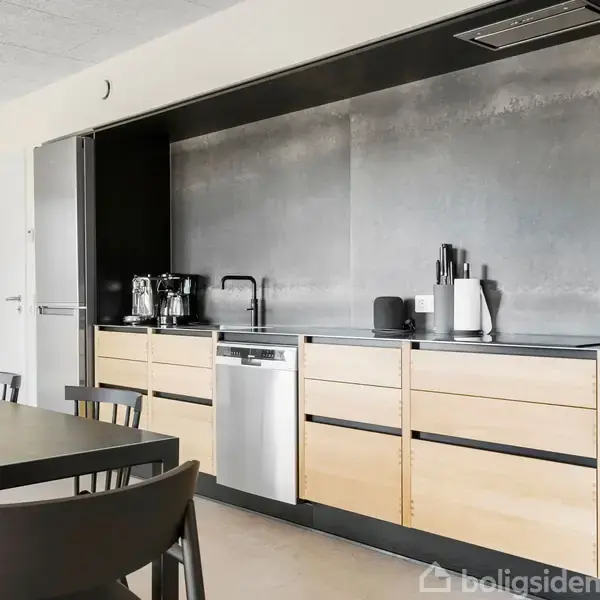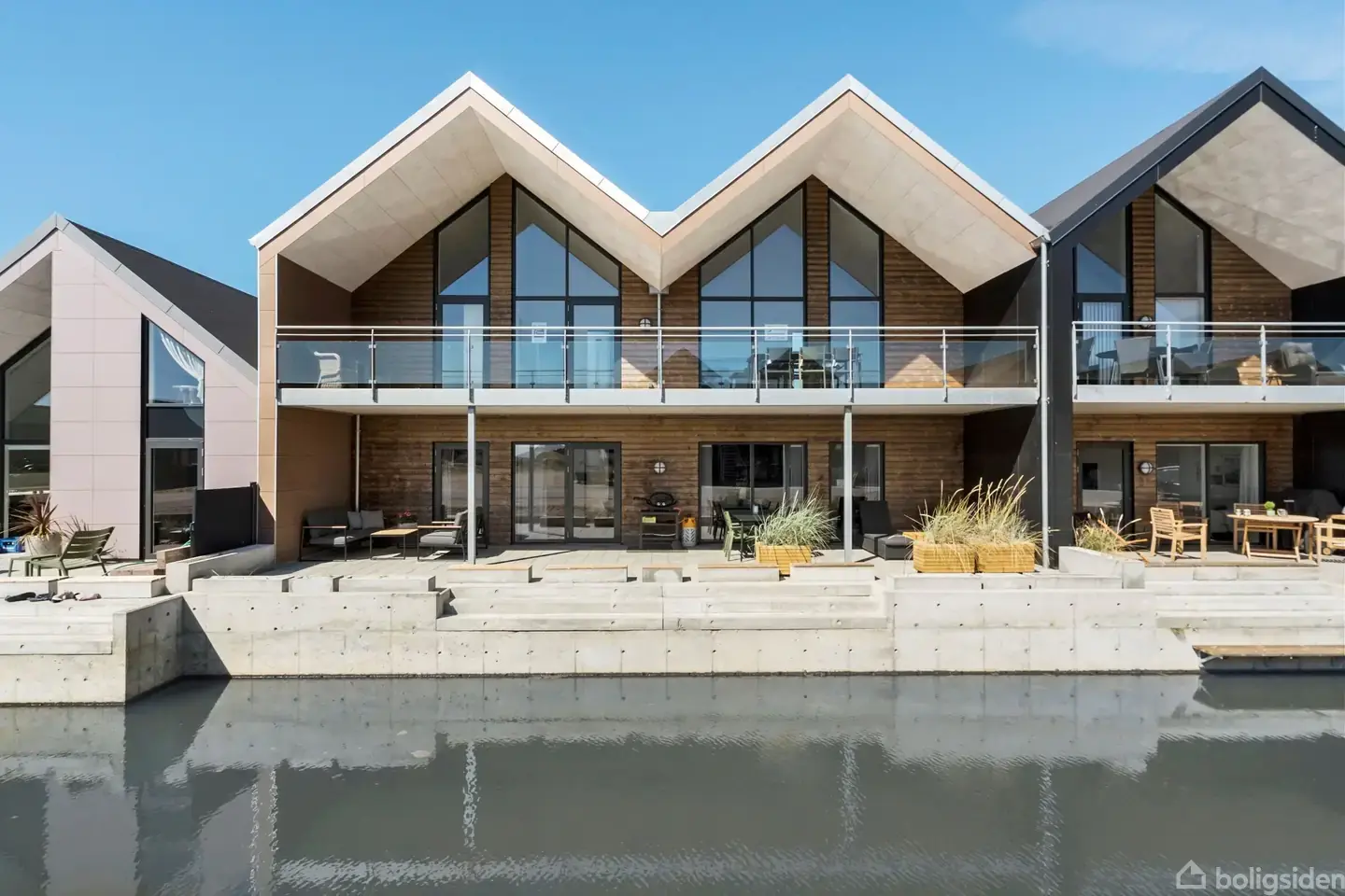 Ferielejlighed beliggende i hjertet af Hvide Sande - direkte ved Ringkøbing Fjord, havnemiljøet og lystbådehavnen! Denne ferielejlighed er en del af den attraktive ejerforening Langsand Langs Vand, der er kendt for sit moderne arkitektoniske udtryk, gennemtænkte materialevalg med minimal vedligeholdelse og en tidssvarende indretning med alt, hvad hjertet kan begære for en skøn ferie i den gamle fiskerby, Hvide Sande. Området omkring lejligheden er gennemskåret af små kanaler, som skaber en helt unik maritim stemning, der smukt understøtter byens atmosfære. Her kan du tage en tur på SUP-board, i kajak eller kano direkte fra kanalerne og sejle ud i Ringkøbing Fjord eller ind til lystbådehavnen. Beliggenheden er eftertragtet og populær - kun et stenkast fra fjorden og få minutters gang til centrum, stranden og Vesterhavet. Velkommen indenfor Allerede i entreen mærkes boligens gennemførte stil, hvor der er god plads til fod- og overtøj. Lejlighedens hjerte er det store, lyse køkken-alrum med køkken fra Invita med flotte egetræsskuffer. Køkkenet står i åben forbindelse til opholds- og spisestuen, der byder på et fantastisk lysindfald og har udgang til en stor, delvist overdækket terrasse. Herfra har du smuk udsigt til en af områdets kanaler, som løber lige forbi terrassen og forbinder hele Langsand-området. Boligen er udført med flotte, store klinker på gulvene og troldtekt-lofter i hele huset, hvilket både giver et moderne udtryk, en rolig akustik og en helt særlig atmosfære i alle rum. Lejligheden indeholder to soveværelser med dobbeltsenge og faste skabe, samt et ekstra værelse med direkte udgang til terrassen. Derudover findes to indbydende badeværelser med væghængt toilet, bruseniche og stilrent badeværelsesmiljø - det ene endda med badekar. Hele boligen har gulvvarme og genvex-anlæg, som sikrer et behageligt indeklima året rundt. Til lejligheden hører egen P-plads + depotrum på 5 kvm.